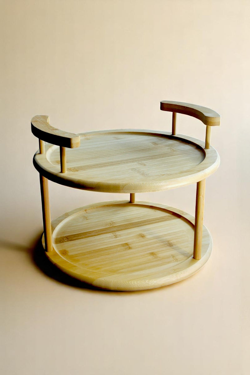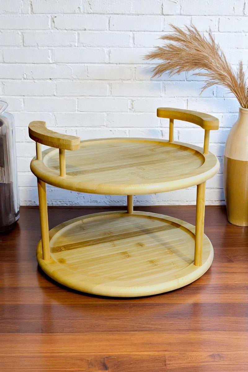 2 katlı 360 Derece Dönebilen Bambu Sunumluk 25CM KW-512