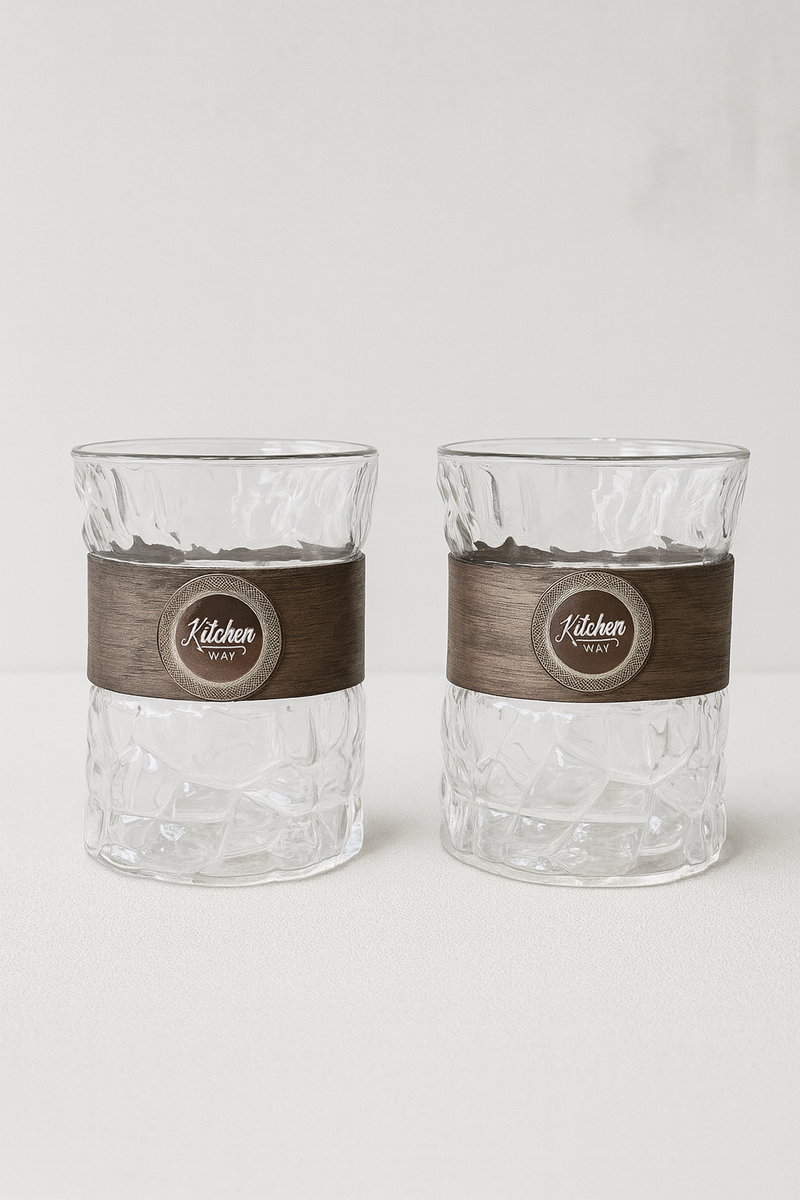 2’li Borosilikat Cam Bardak Set Akasya Tutamaçlı KW-856