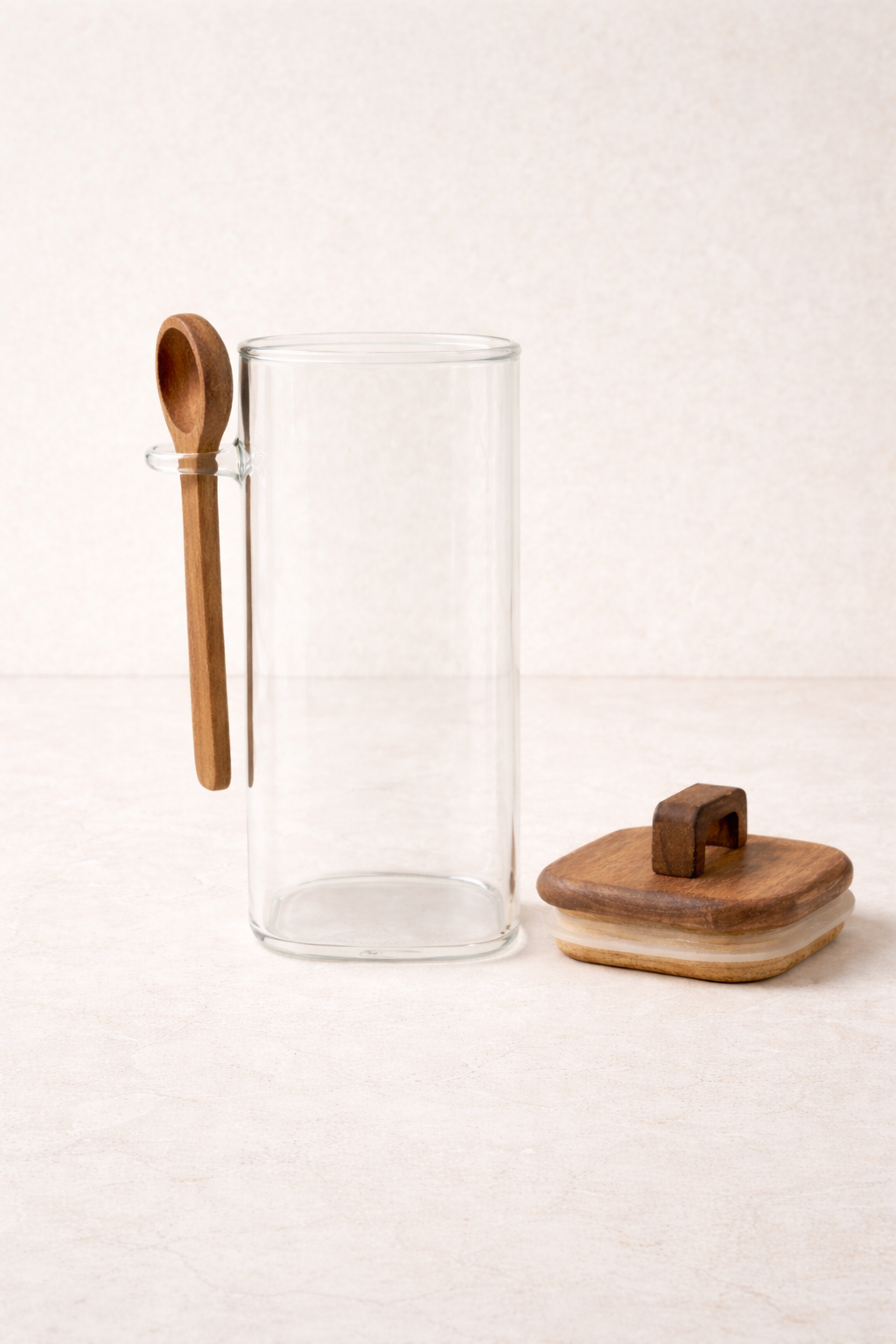 Akasya Kaşıklı Borosilikat Cam Kavanoz, dayanıklı yapısı ve zarif tasarımıyla baharatlarınızı taze tutarken mutfağınıza şıklık katar.