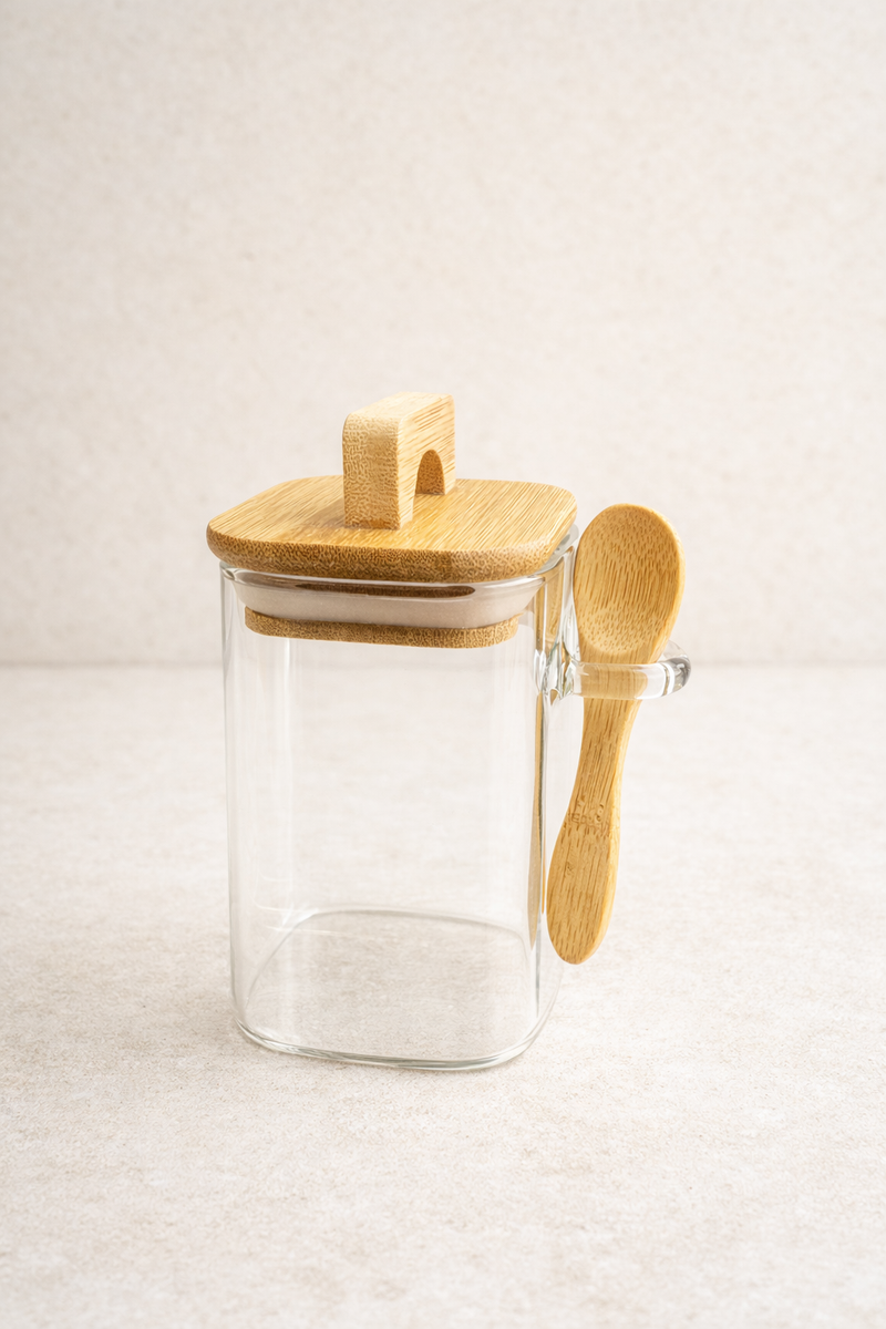 Akasya Kaşıklı Borosilikat Cam Kavanoz, dayanıklı yapısı ve zarif tasarımıyla baharatlarınızı taze tutarken mutfağınıza şıklık katar.