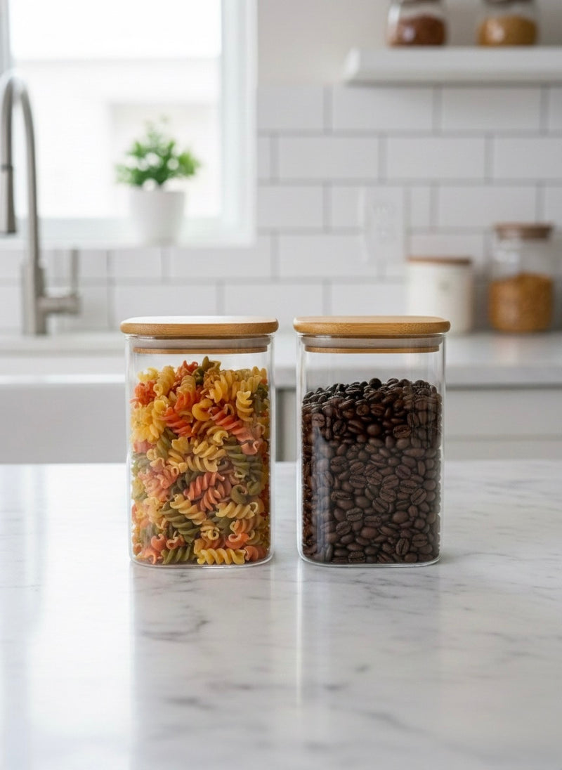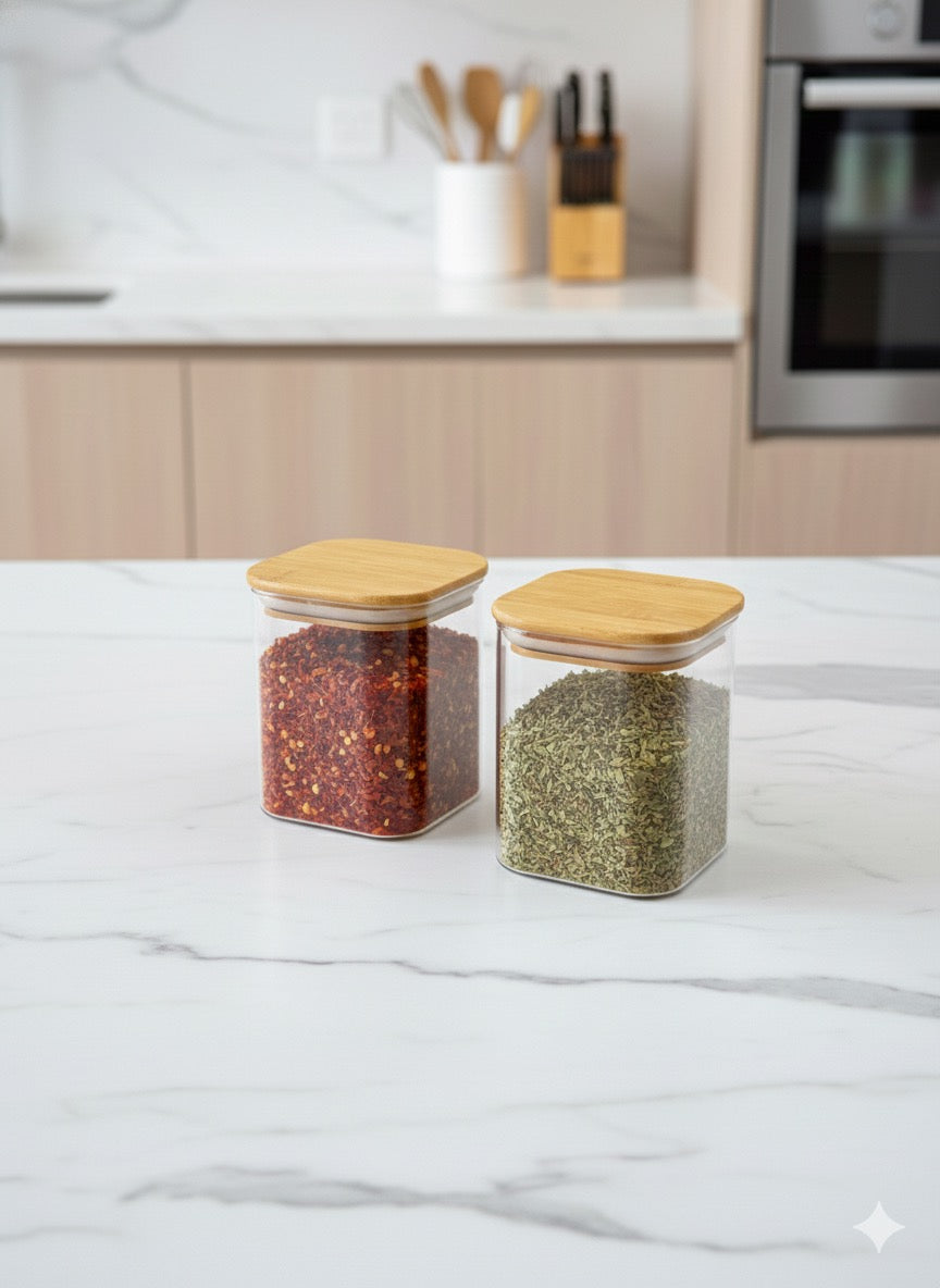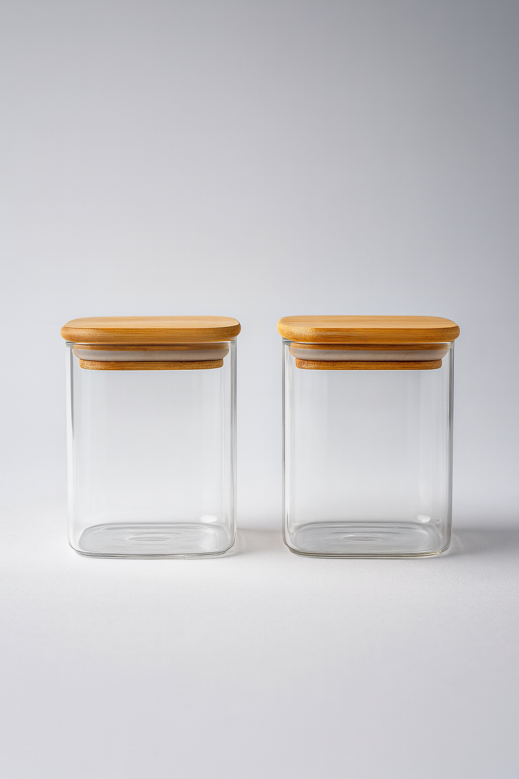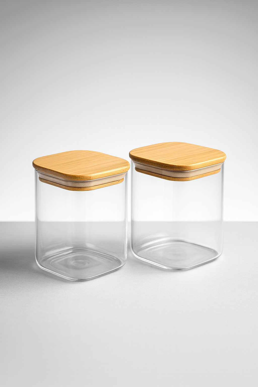 Şık ve kullanışlı tasarımıyla mutfağınıza doğal bir dokunuş katacak 2’li cam kavanoz seti.