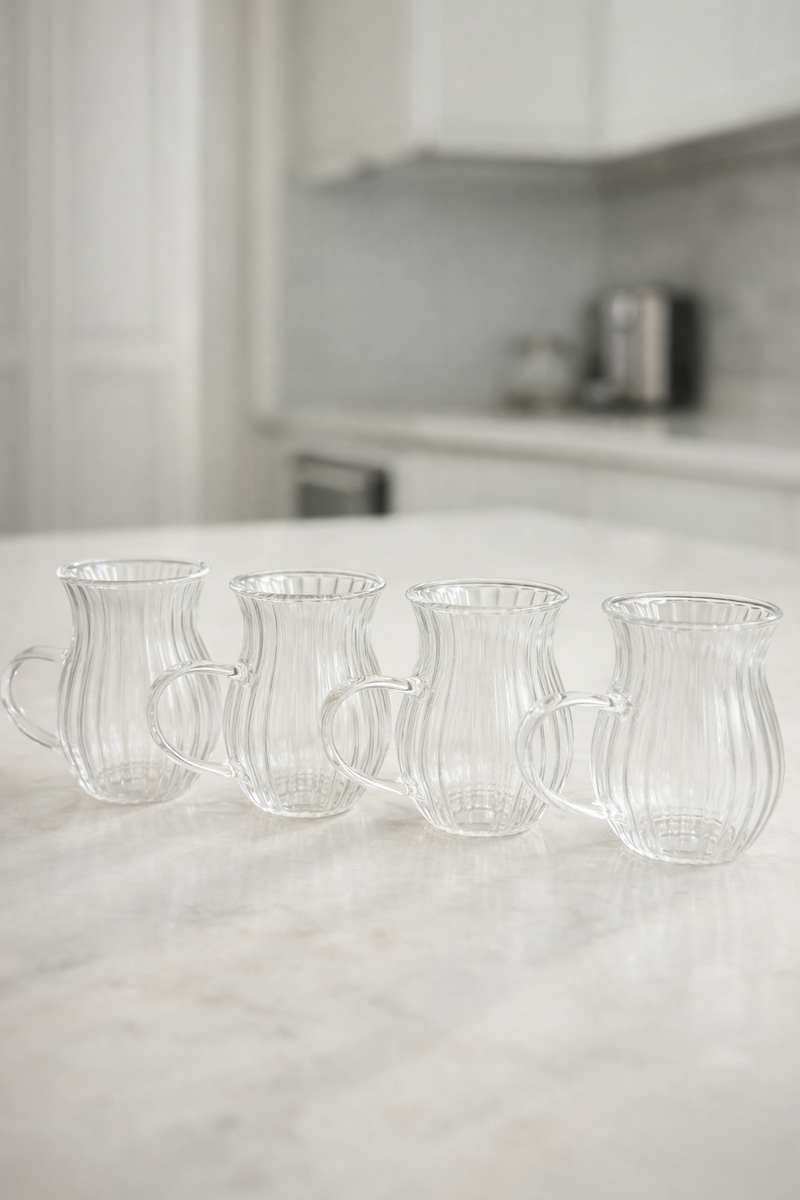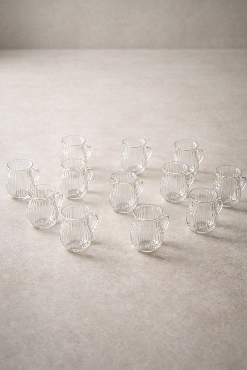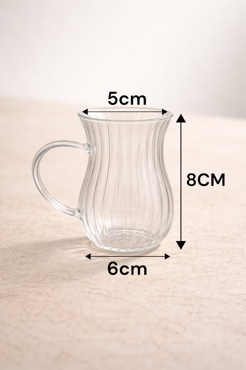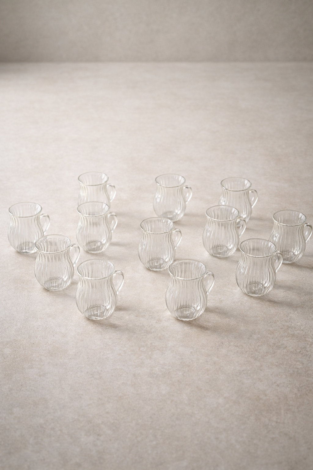 12’li 200 ML Borosilikat Kulplu Çizgi Desenli Diamond Cam Bardak Seti Isıya Dayanıklı Şeffaf KW-728