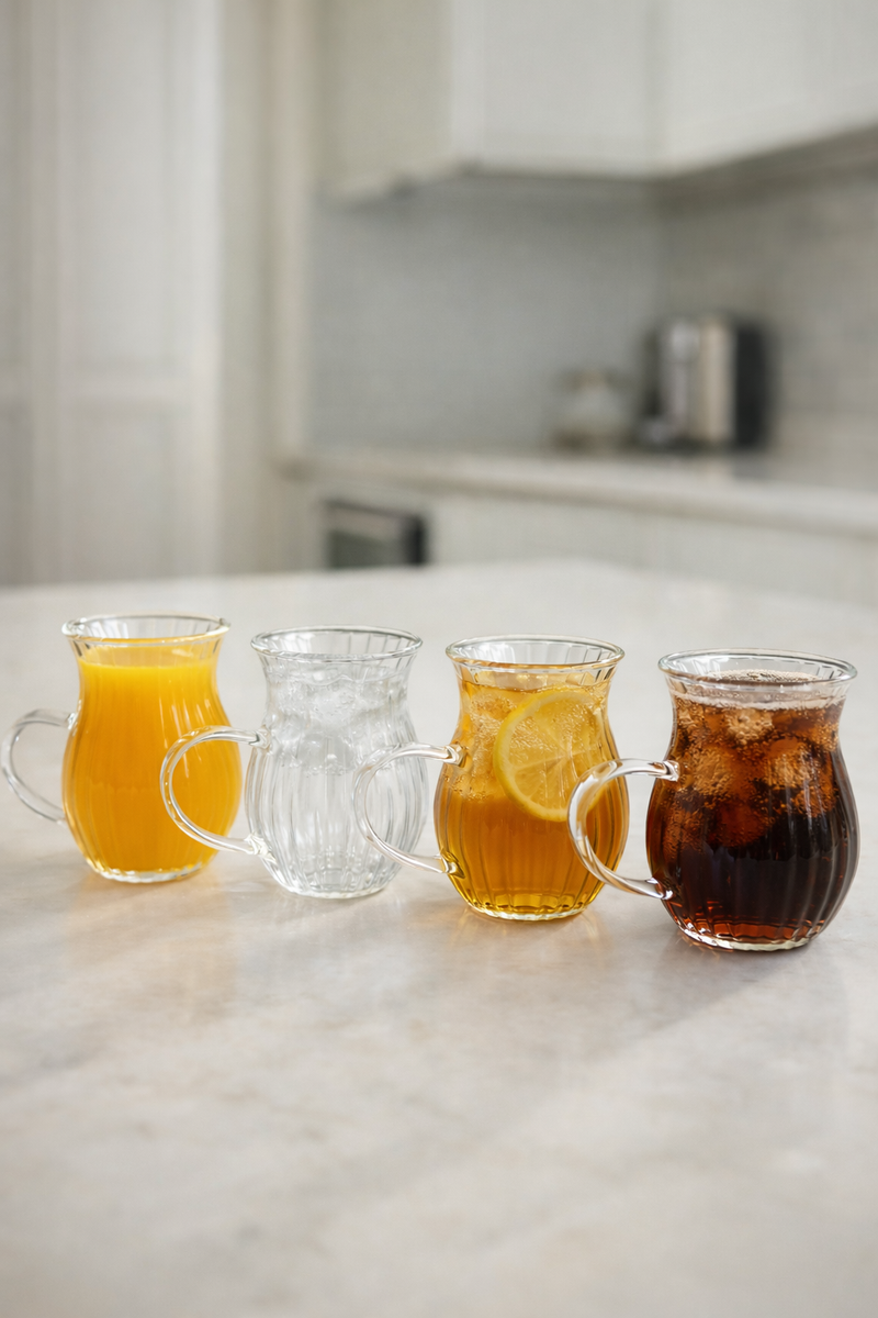 Borosilikat cam yapısı sayesinde ani ısı değişimlerine karşı dirençlidir; sıcak ve soğuk içeceklerde güvenle kullanılabilir. İnce ve şeffaf tasarımı, içeceğin rengini ve dokusunu estetik şekilde ön plana çıkarır.
