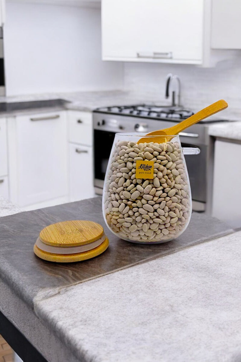 Bambu Kaşıklı Borosilikat 1000ML Isıya Dayanaklı Kavanoz KW-389C