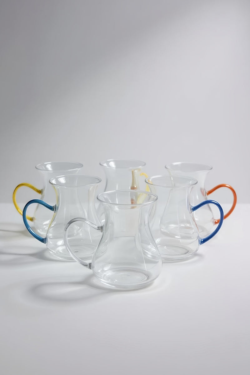 6'lı Renkli Kulplu Borosilikat Katre Serisi Bardak Seti 150ML KW-633