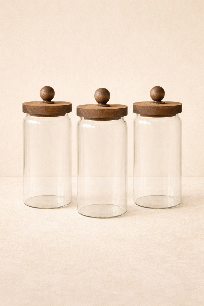 Akasya Conta Kapaklı 3'lü Borosilikat 1000ml Kavanoz Set KW-745