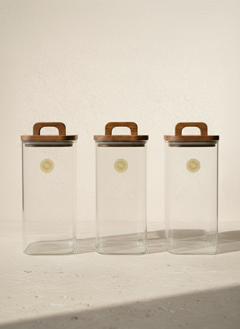Akasya Conta Kapaklı 3'lü Borosilikat 1750ml Kare Kavanoz Seti KW-778