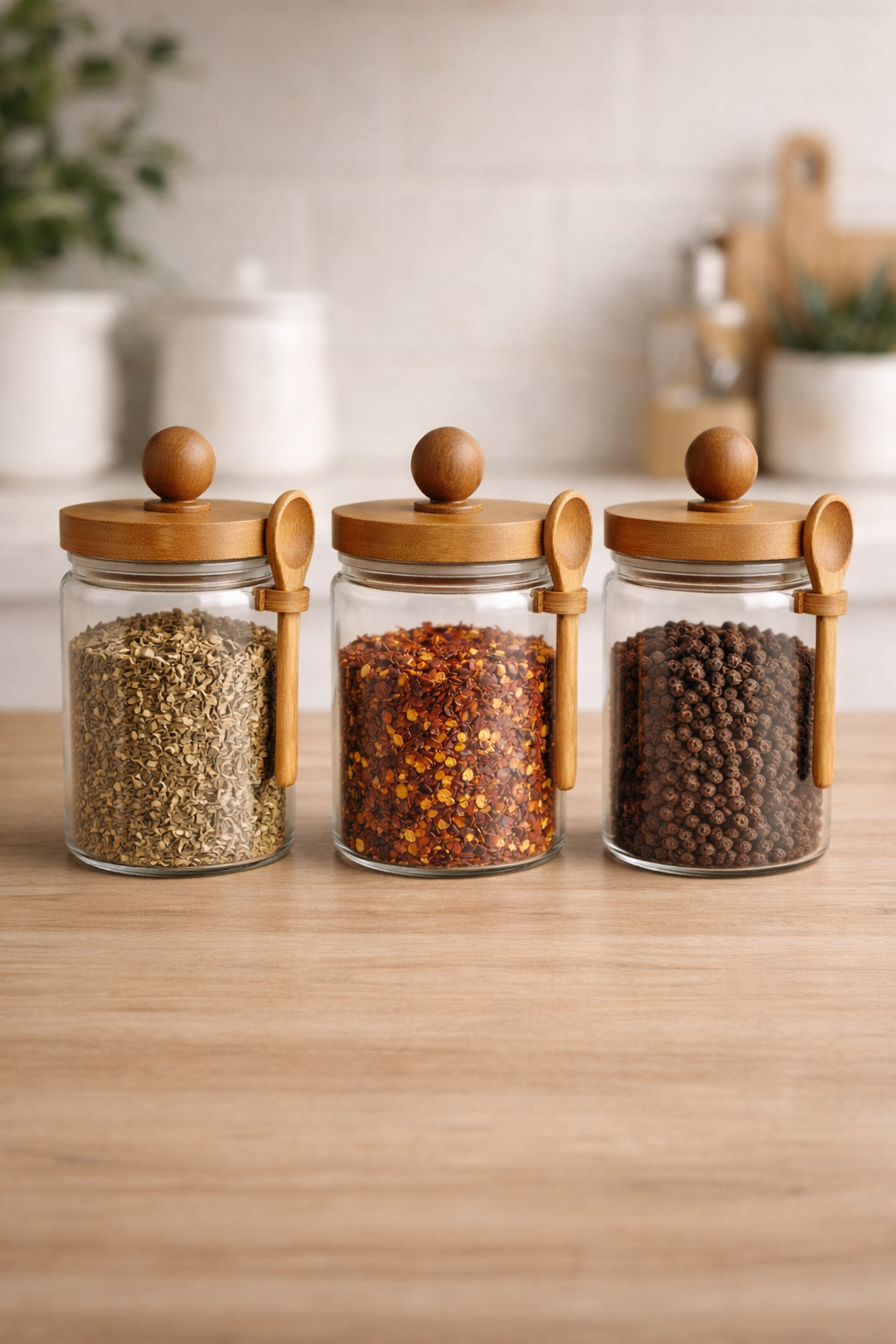 Kahve, çay, baharat veya minik atıştırmalıklarınızı düzenli bir şekilde saklamak için idealdir. Farklı boylardaki kavanozlarla set halinde kullanarak doğal ve uyumlu bir görünüm elde edebilirsiniz.