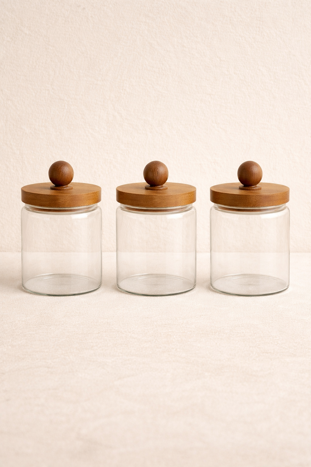 Akasya Conta Kapaklı 3'lü Borosilikat 450ml Kavanoz Seti KW-742