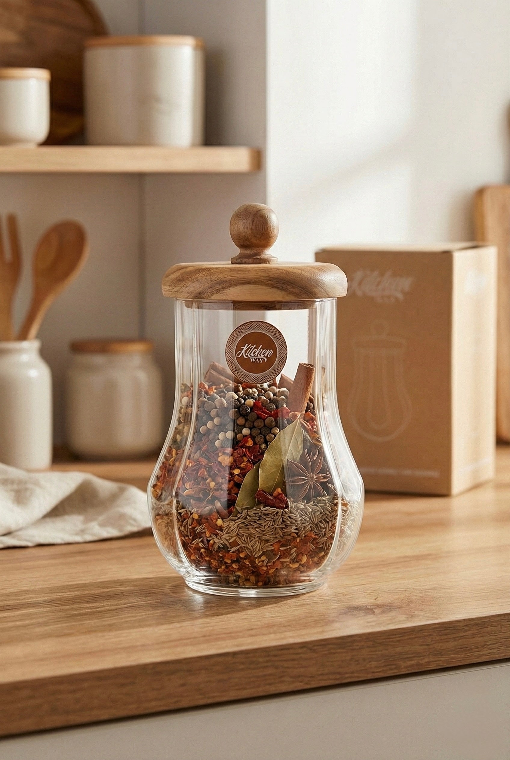 Baharat, bakliyat, kahve, çay, kuruyemiş, şekerleme ve dekoratif ürünler için kullanılabilir. Minimalist tasarımıyla mutfak tezgâhı, açık raf sistemi veya kiler düzeninde modern bir görünüm sağlar. Hem fonksiyonel hem dekoratif yapısıyla mutfak organizasyonu için ideal bir üründür.