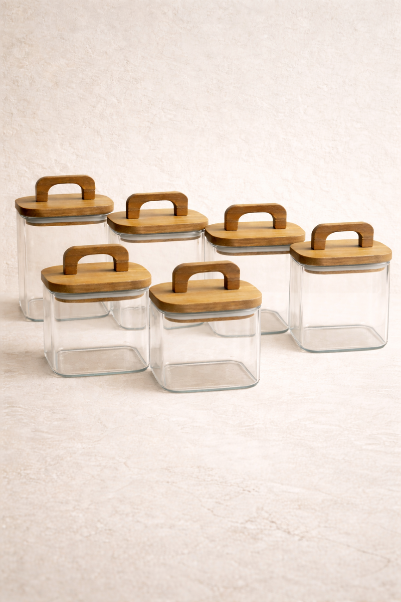 Akasya Conta Kapaklı 6'lı Borosilikat 750ml Kare Kavanoz Seti KW-776