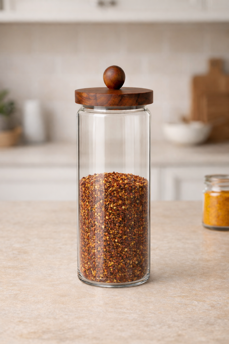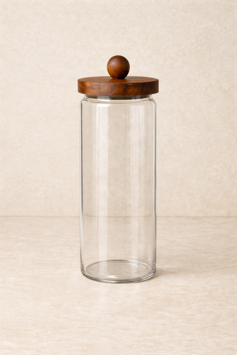 Akasya kapaklı cam kavanoz, doğal ahşap kapak tasarımı ve şeffaf cam gövdesiyle mutfak ve yaşam alanlarında hem düzen hem de estetik sunar. Cam gövdesi sayesinde içeriği kolayca görünürken, akasya ahşap kapak doğal ve sıcak bir görünüm kazandırır. Baharat, bakliyat, kahve, şeker, çay ve kuru gıdaların saklanması için uygundur.