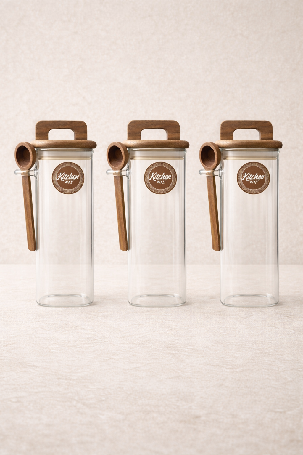 Akasya Conta Kapaklı Kaşıklı 3'lü Borosilikat 300ml Kare Kavanoz Seti KW-794