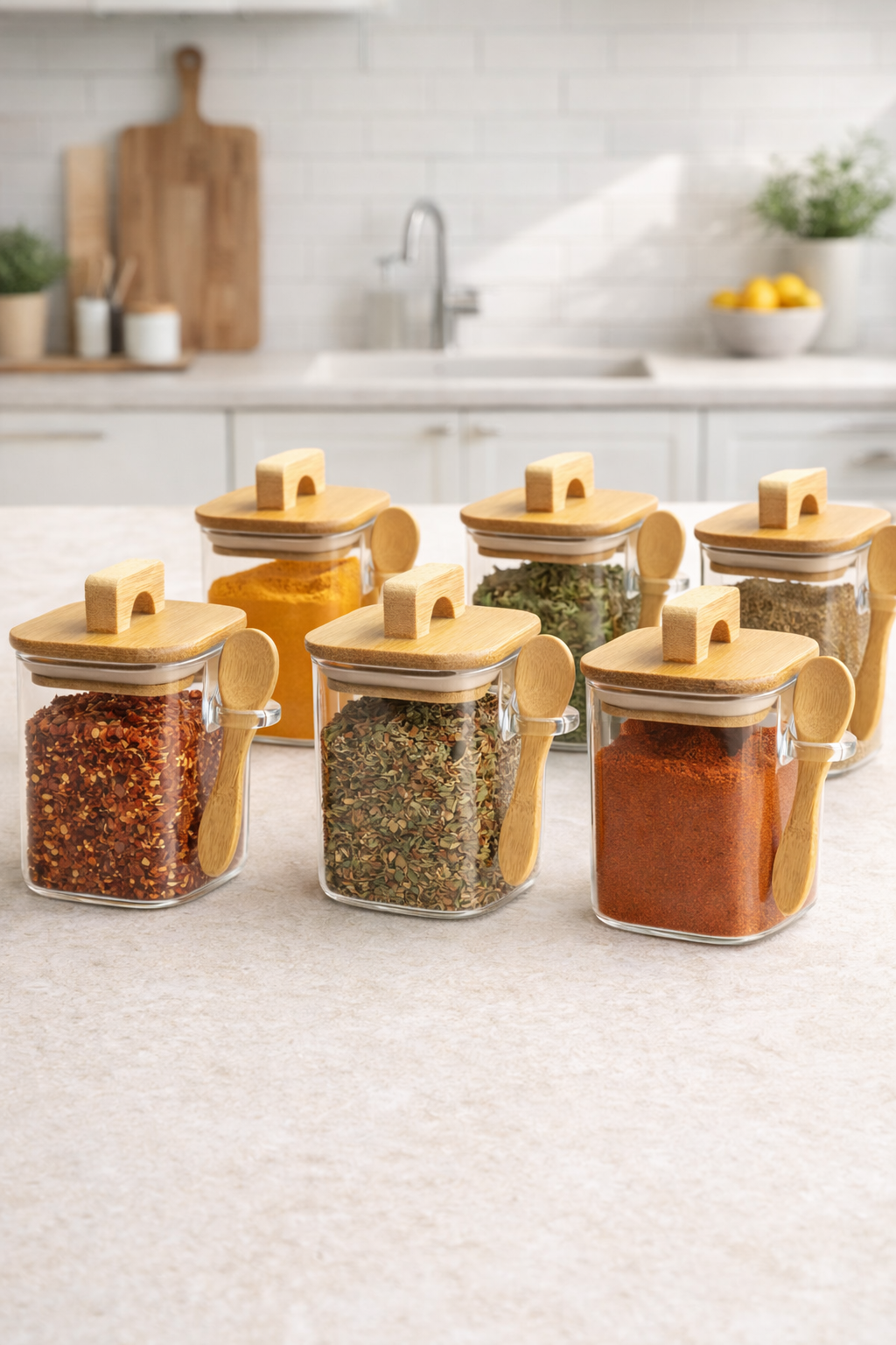 Akasya Kaşıklı Borosilikat Cam Kavanoz, dayanıklı yapısı ve zarif tasarımıyla baharatlarınızı taze tutarken mutfağınıza şıklık katar.