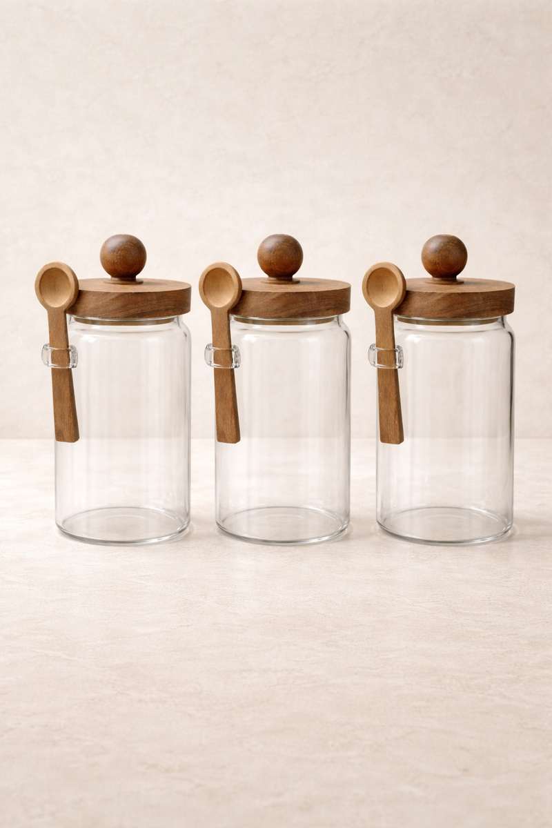 Akasya Kaşıklı Conta Kapaklı 3'lü Kavanoz Baharatlık KW-736