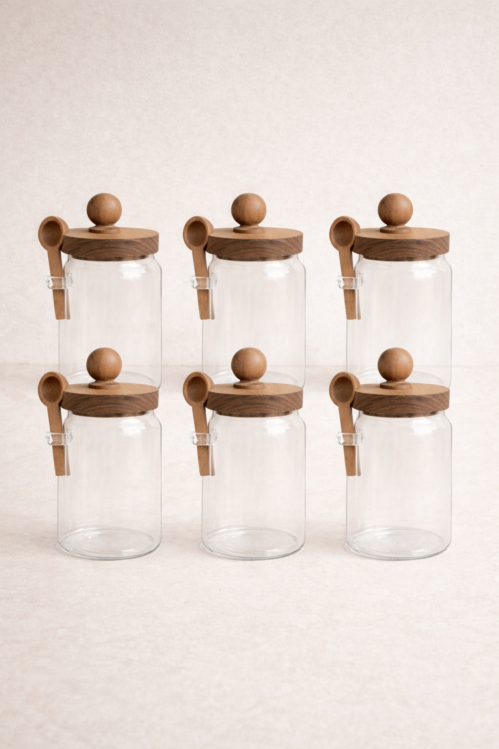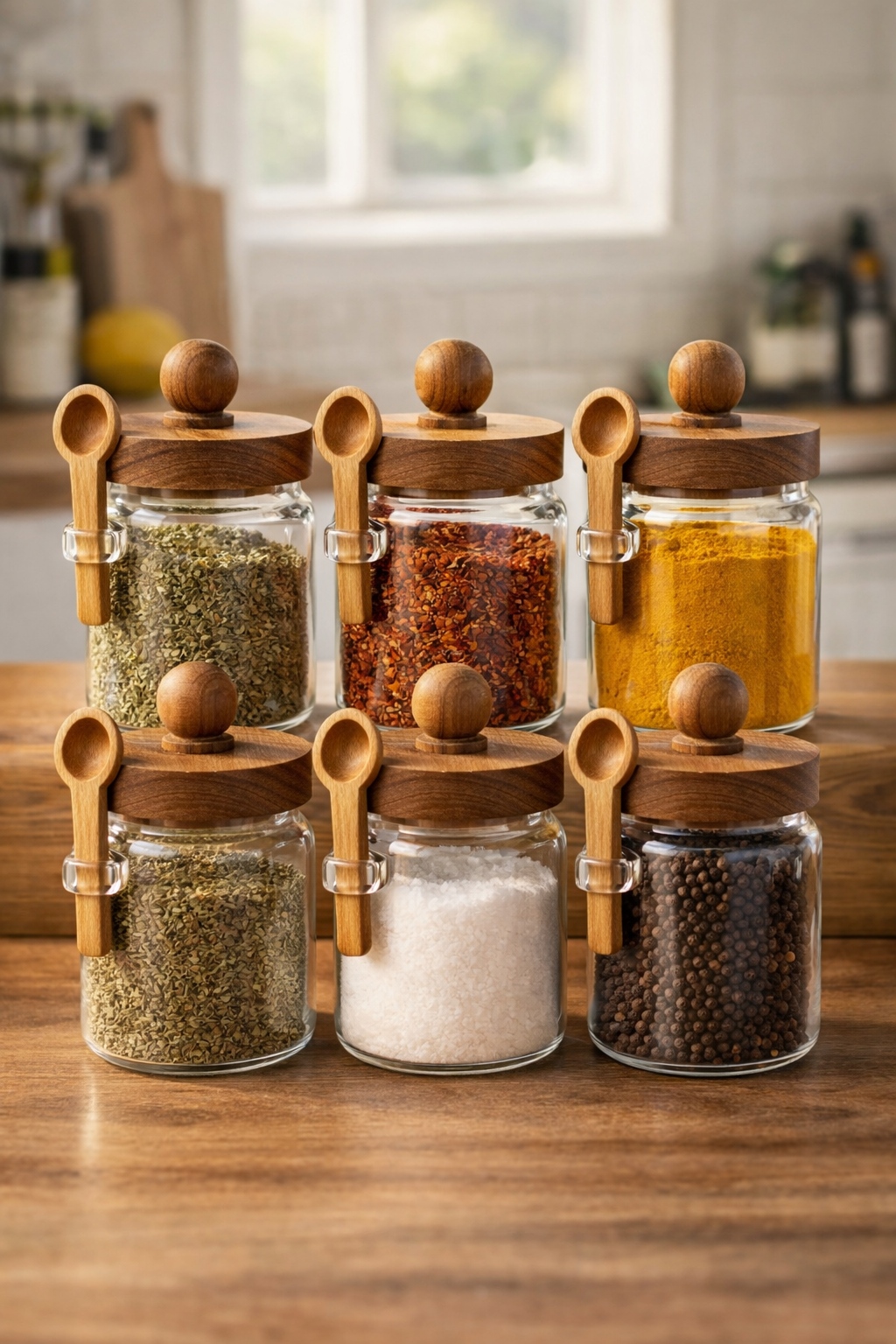 Akasya Kaşıklı Conta Kapaklı 6'lı Kavanoz Baharatlık Set KW-735