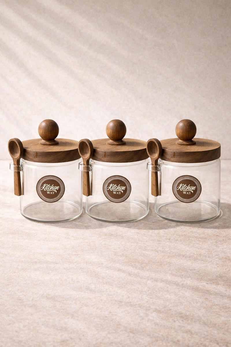 Akasya Kaşıklı Conta Kapaklı 3'lü Kavanoz Baharatlık Set KW-734