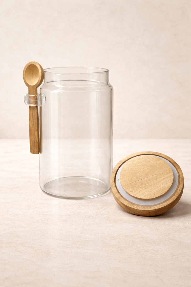 - Mutfaklarınızda hem şıklık hem de pratik kullanım sunan bu cam kavanoz, akasya ağacından üretilmiş kapak ve kaşığı ile doğal bir görünüm kazanıyor. Yuvarlak formu sayesinde estetik bir duruşa sahip olan kavanoz, kapağında yer alan conta ile içindeki ürünlerin tazeliğini uzun süre korur.