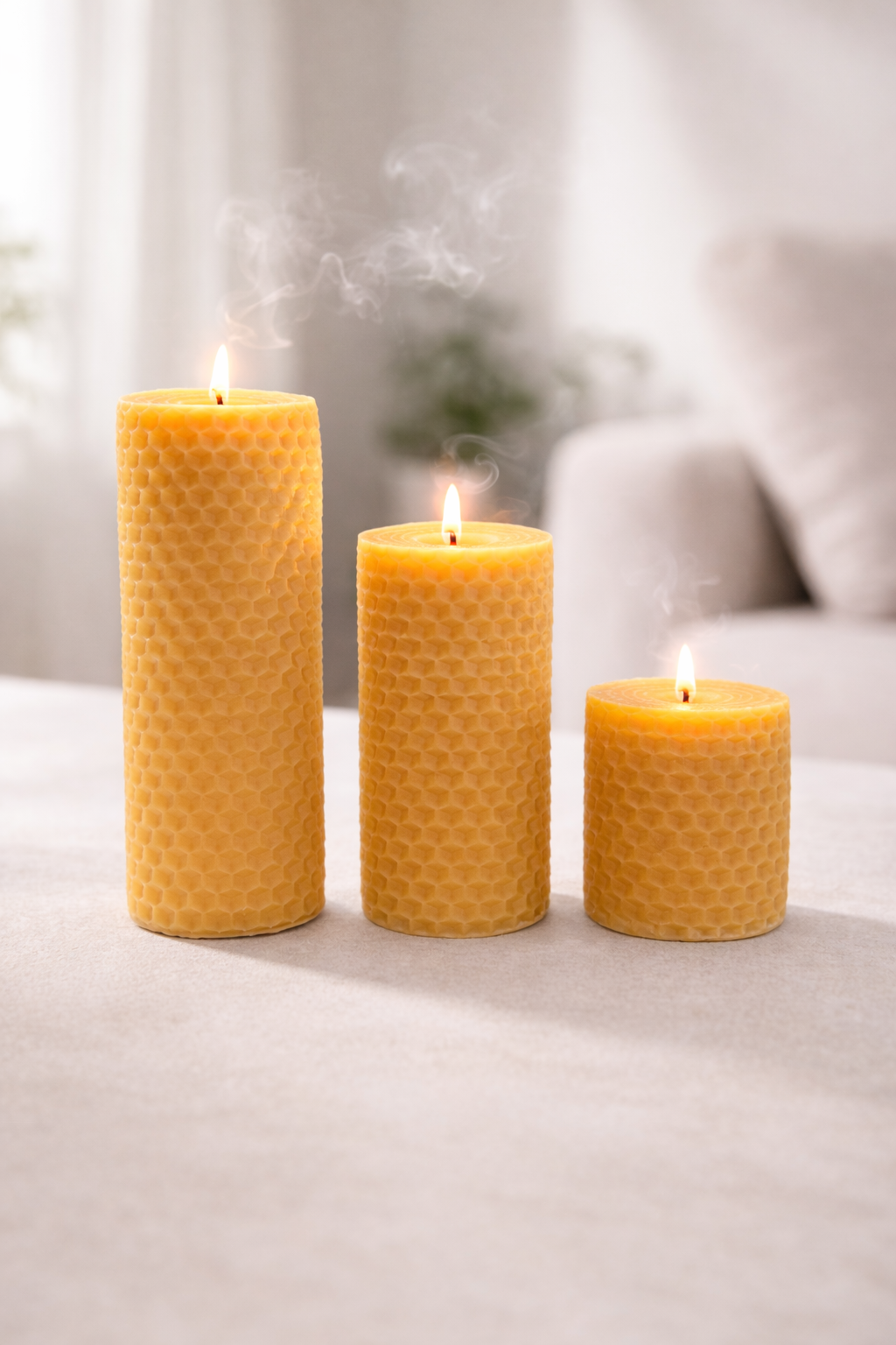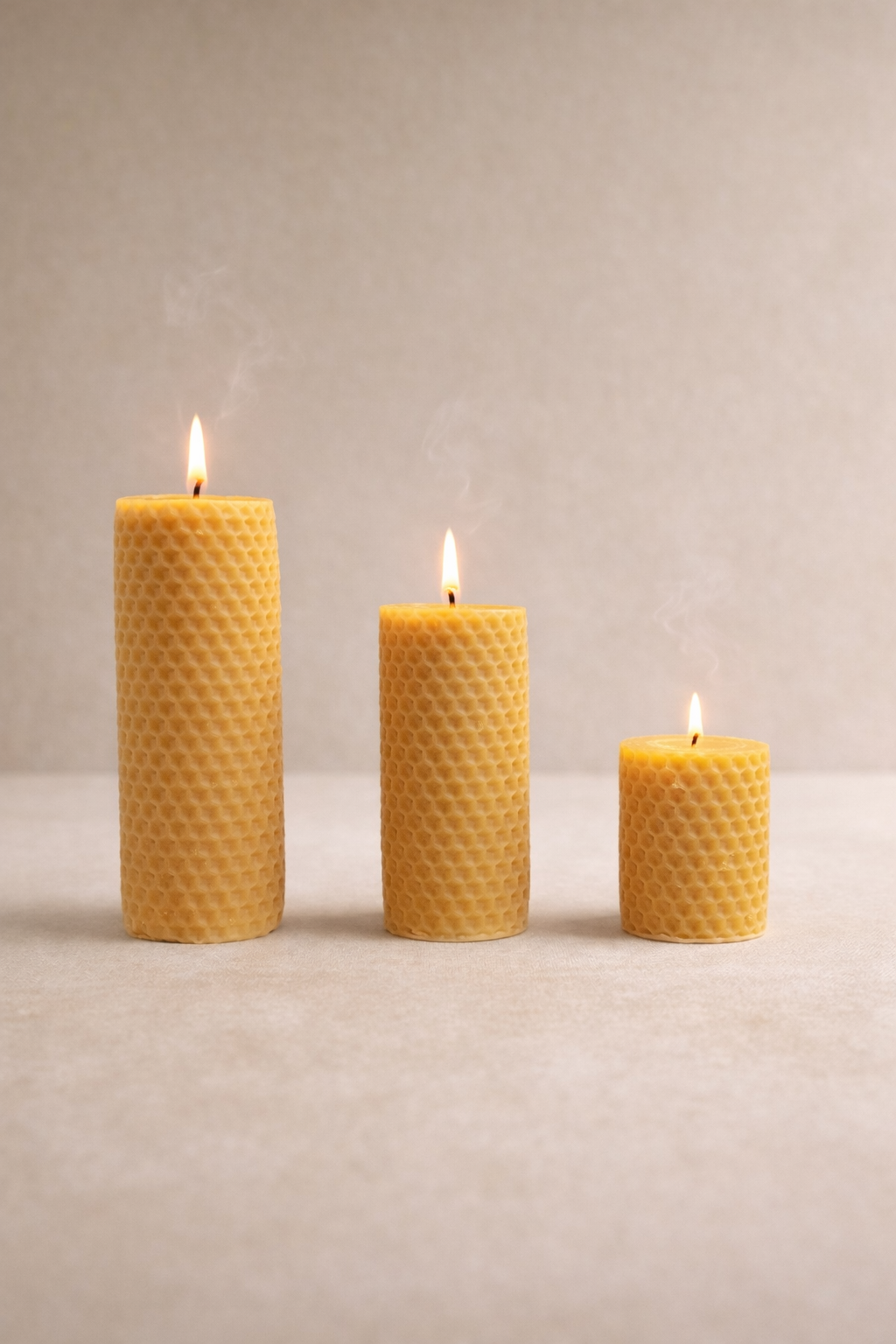 Bal peteği baton mum, özel bal peteği dokusu ve silindir formu ile yaşam alanlarına sıcak ve dekoratif bir atmosfer kazandırır. Kabartmalı yüzeyi sayesinde klasik mumlara göre daha estetik ve dikkat çekici bir görünüm sunar. Dekoratif amaçlı kullanıma uygun olduğu gibi yakıldığında ortama yumuşak bir ışık yayarak huzurlu bir ambiyans oluşturur.