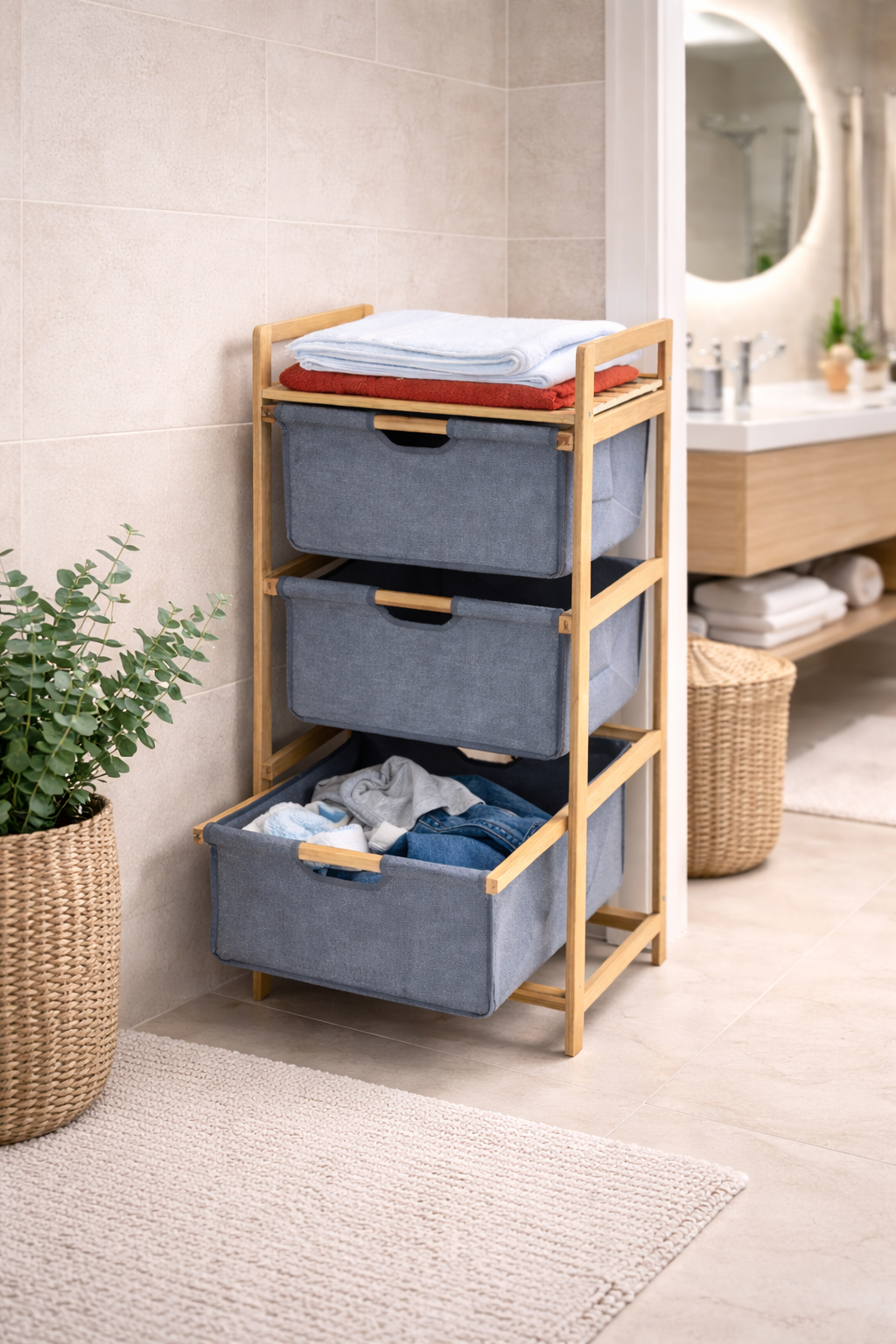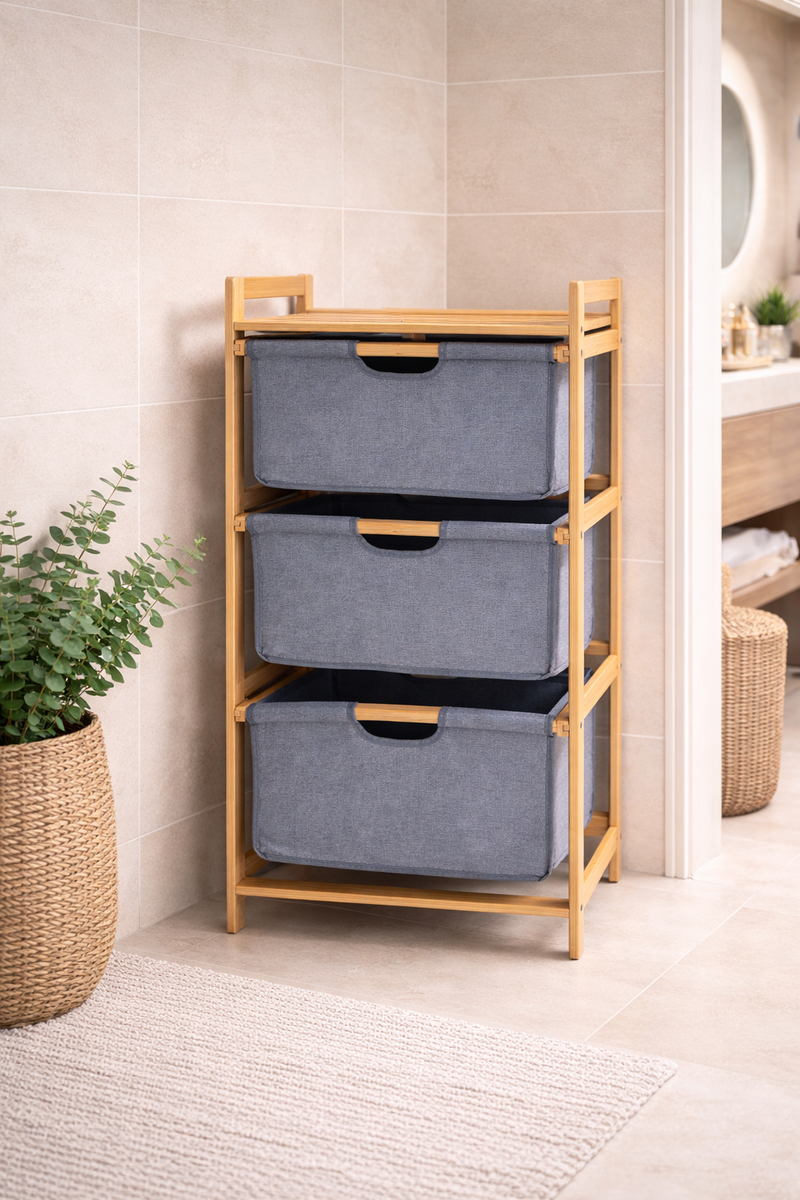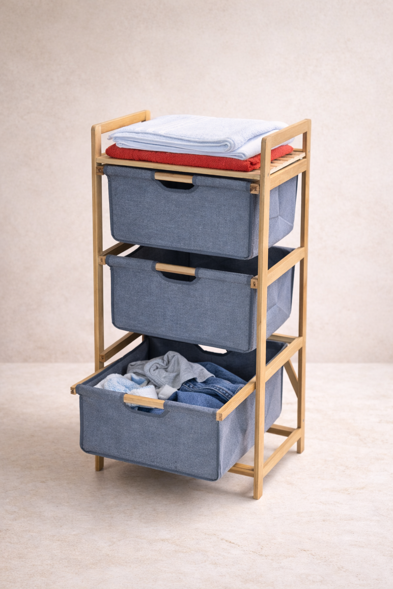 Bambu Çamaşır Sepeti Çekmeceli Doğal Bambu Dayanıklı Şık Tasarım SHN-2096