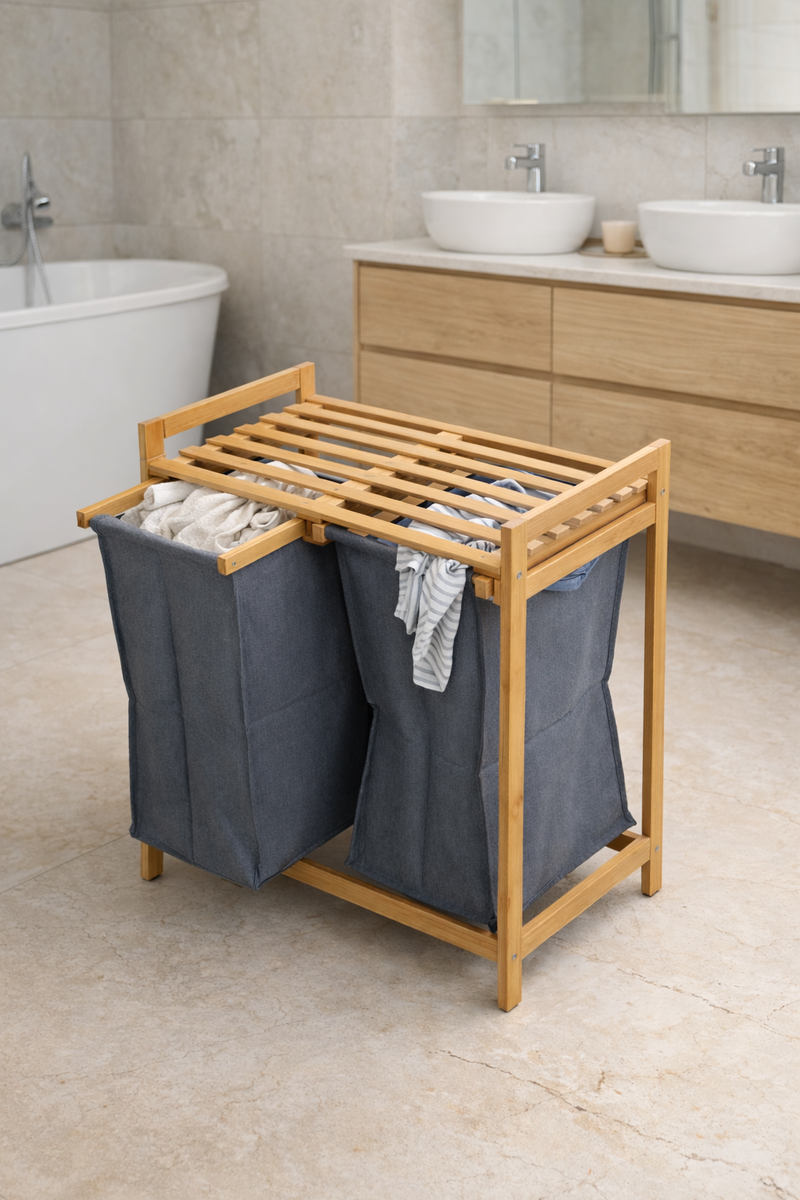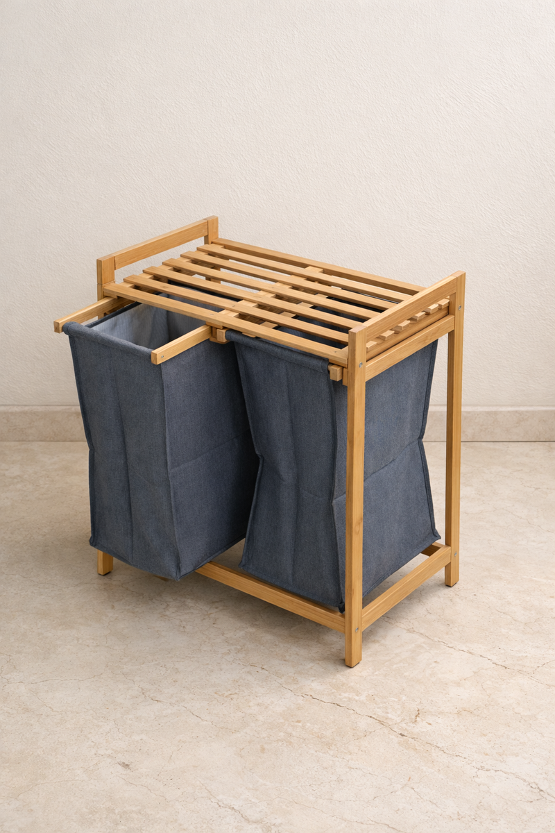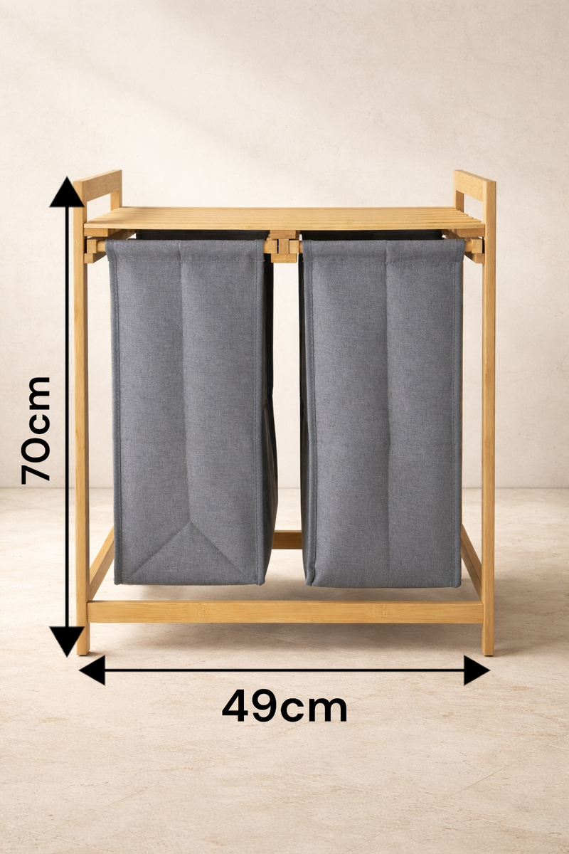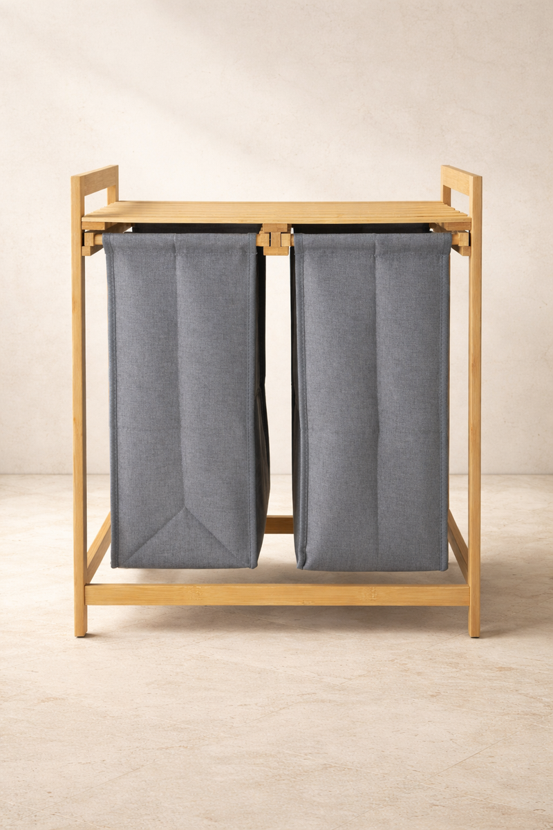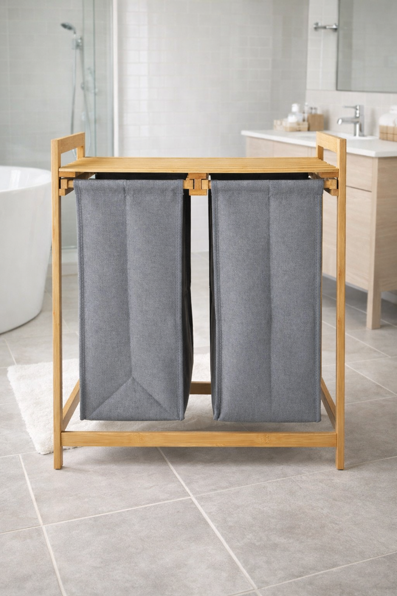 Bambu Çamaşır Sepeti Çift Bölmeli Doğal Bambu Dayanıklı Şık Tasarım SHN-2101