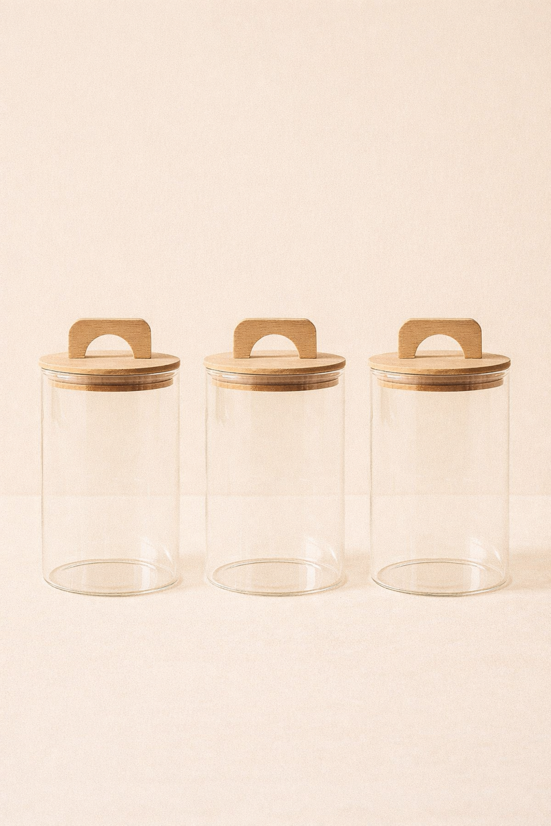 Bambu Conta Kapaklı 3'lü Borosilikat 1000ml Kavanoz Seti KW-774