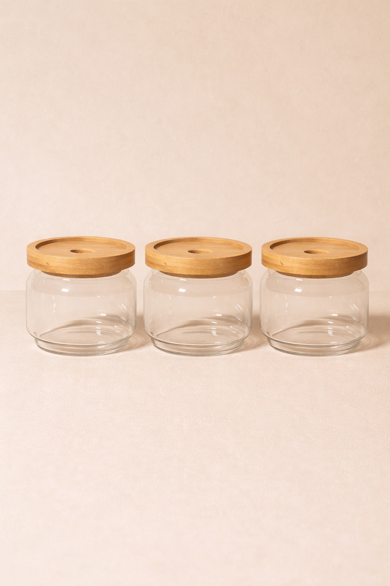 Bambu Conta Kapaklı 3'lü Borosilikat 350ml Kavanoz Seti KW-787