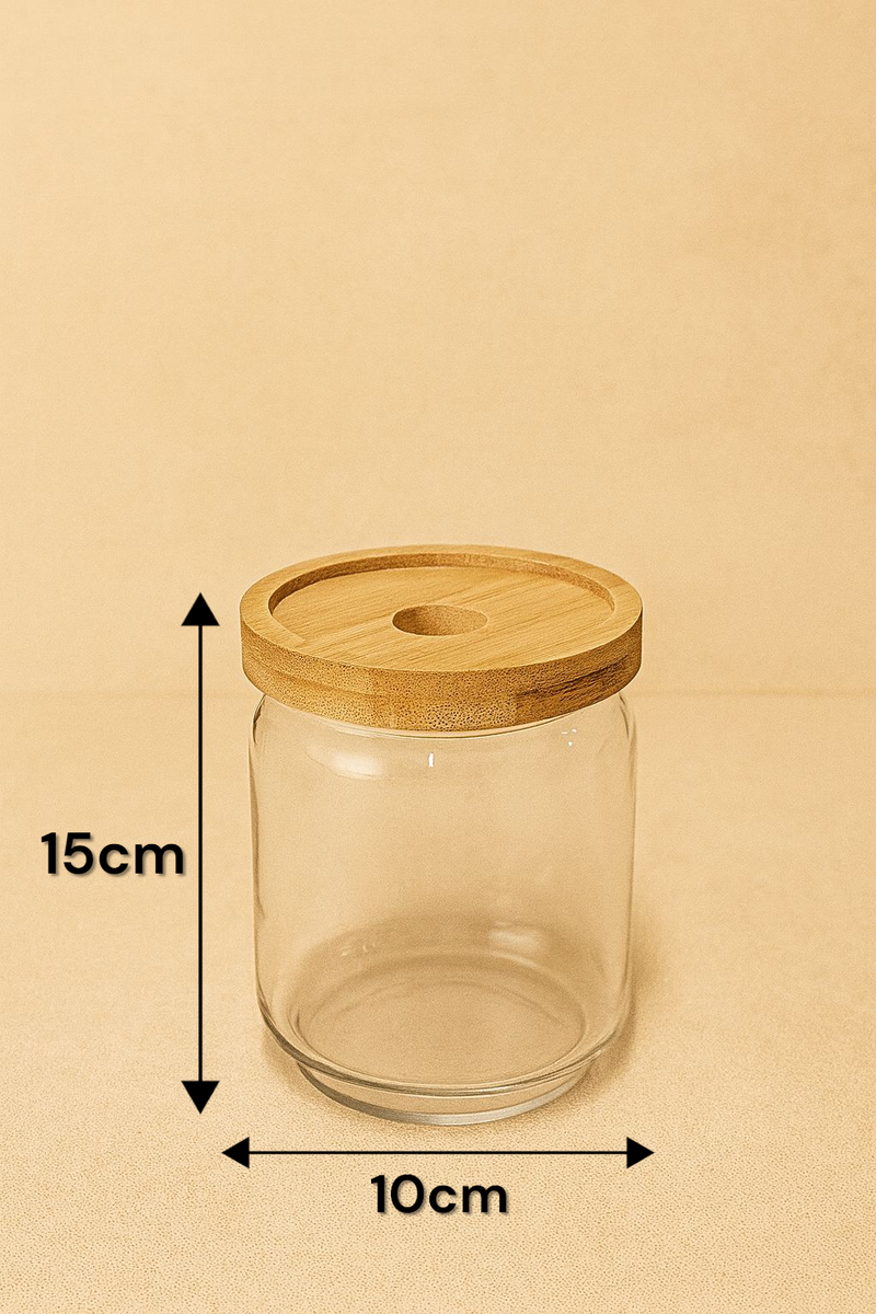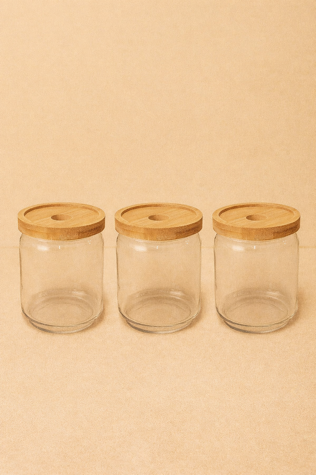 Bambu Conta Kapaklı 3'lü Borosilikat 450ml Kavanoz Seti KW-788