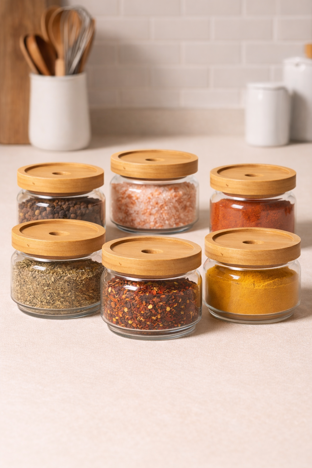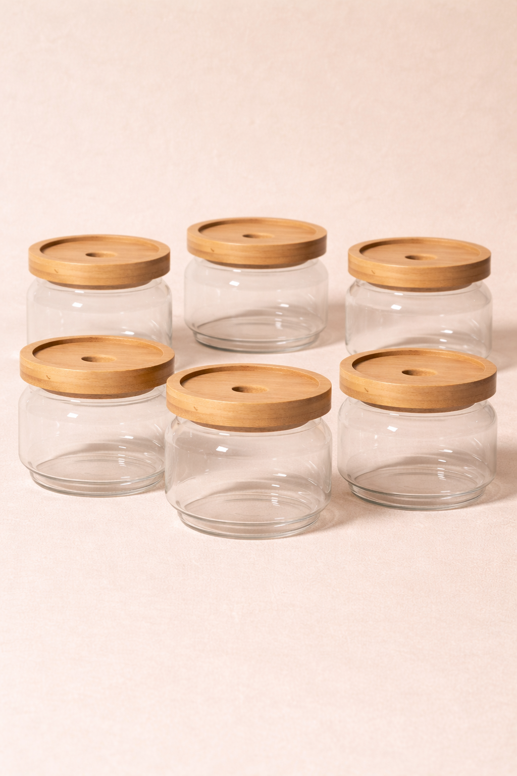 Bambu Conta Kapaklı 6'lı Borosilikat 350ml Kavanoz Seti KW-787