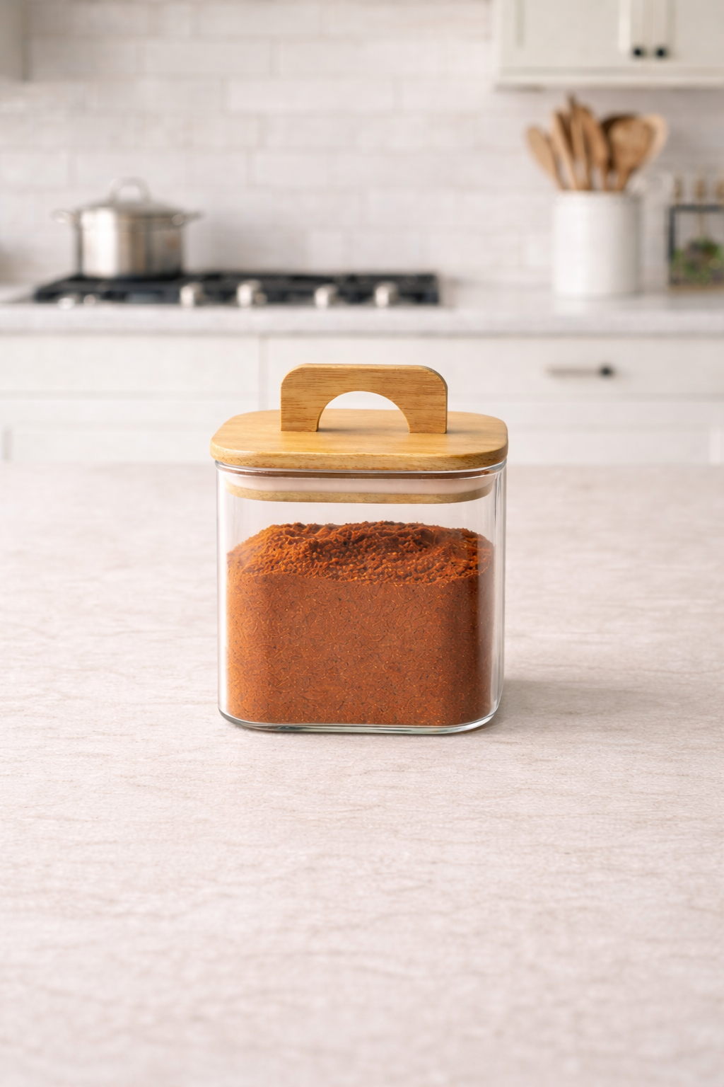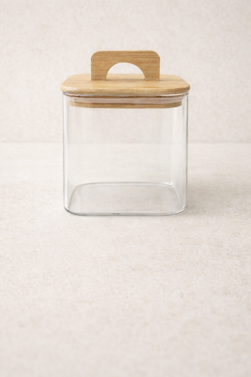 Bambu Conta Kapaklı Borosilikat 750ml Kare Kavanoz KW-779