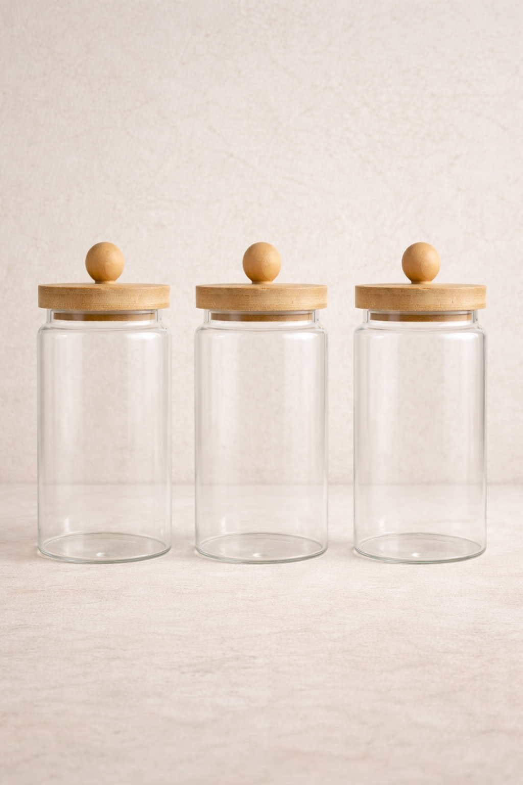 Bambu Conta Kapaklı Borosilikat Cam Kavanoz KW-749