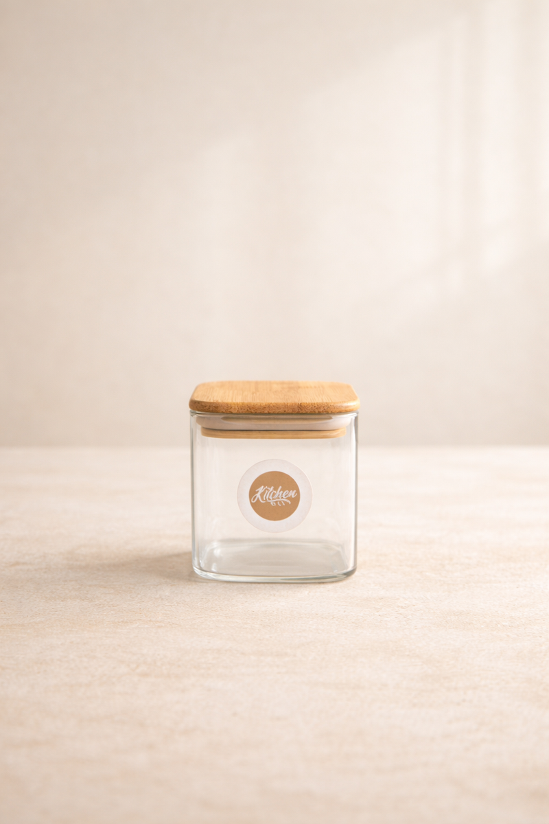 Bambu Kapaklı 4lü Kare Cam Kavanoz Seti 200ML Gıda Saklama Kavanozu KW-1164