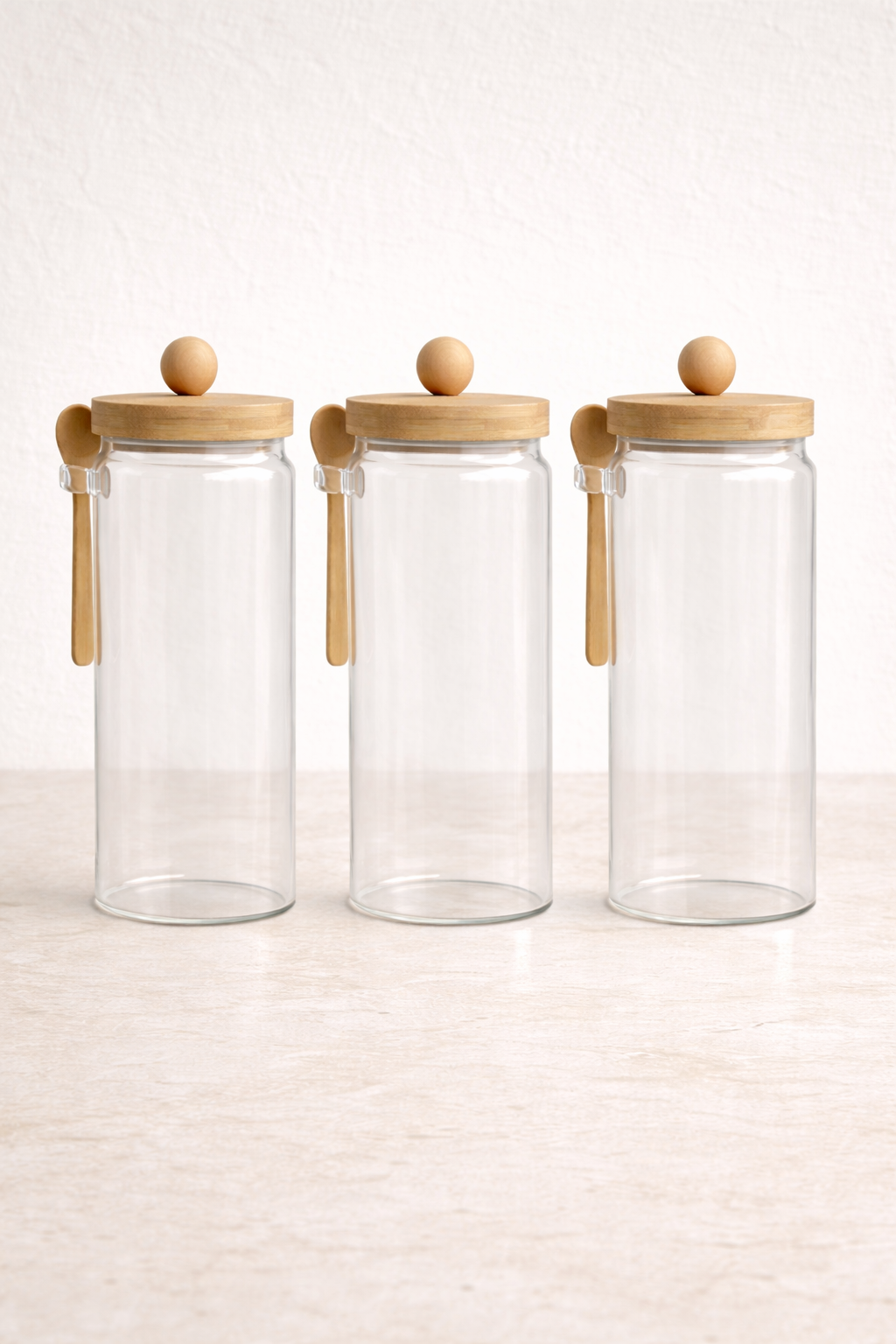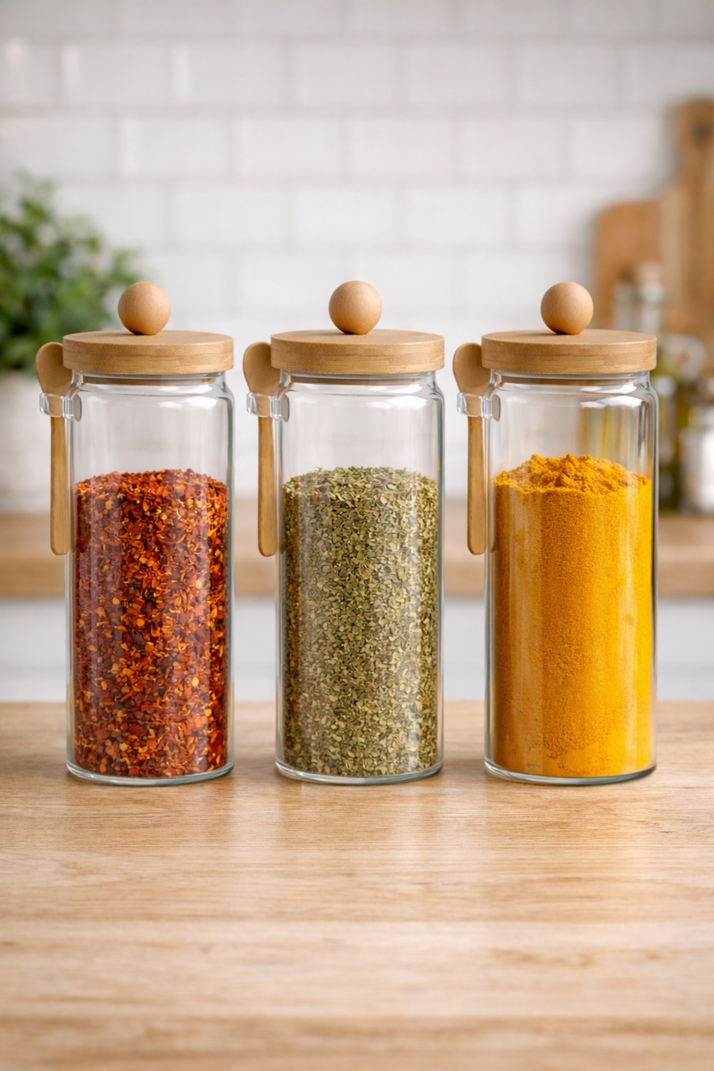 Bambu Kaşıklı Conta Kapaklı 3'lü Kavanoz Baharatlık Seti KW-741