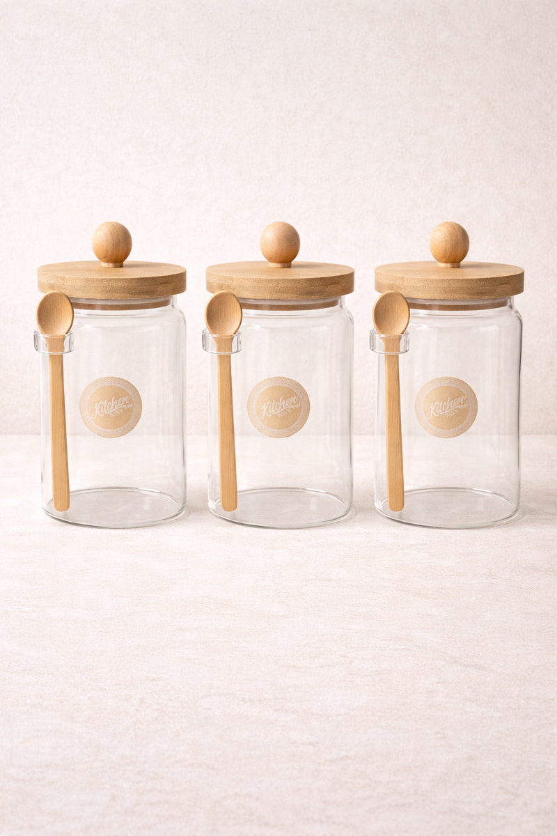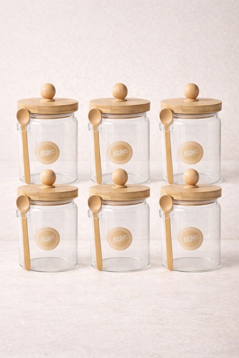 Bambu Kaşıklı Conta Kapaklı Kavanoz Baharatlık KW-740