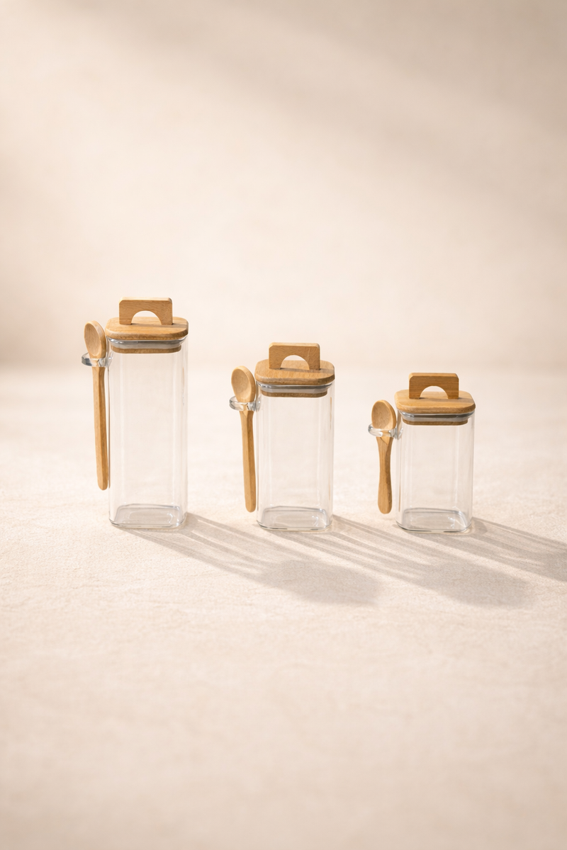 Bambu Kaşıklı Conta Kapaklı Kavanoz Set Baharatlık KW-790-2 Series