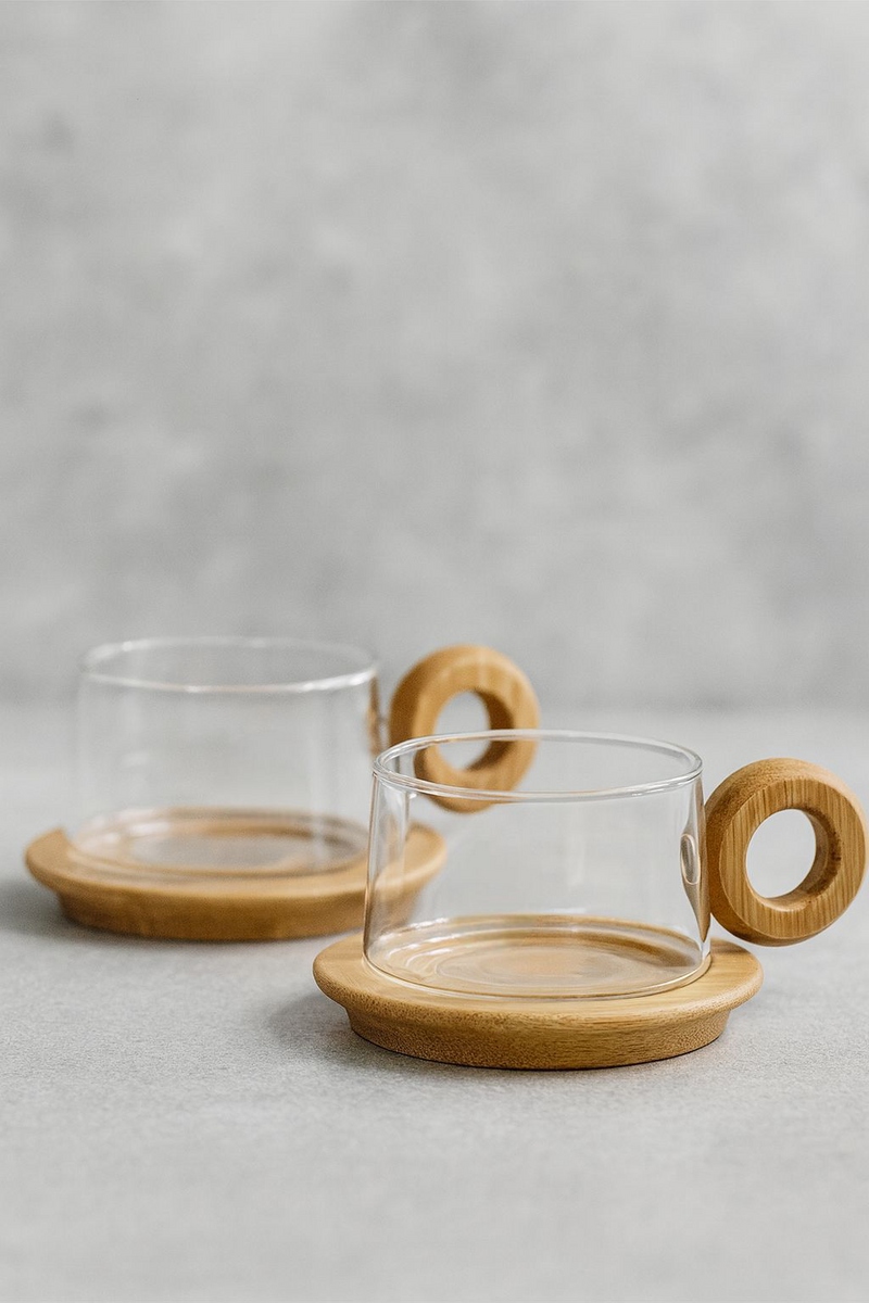 Bambu Kulplu 2'Li Borosilikat 250ml Fincan Seti KW-1076