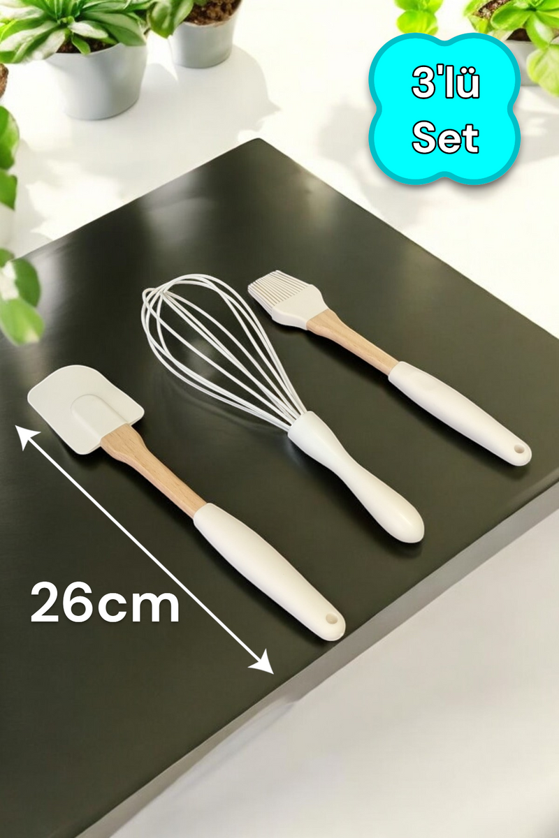 Bambu Saplı Silikon Başlık 3 Lü Pasta ve Kek Seti KW-403