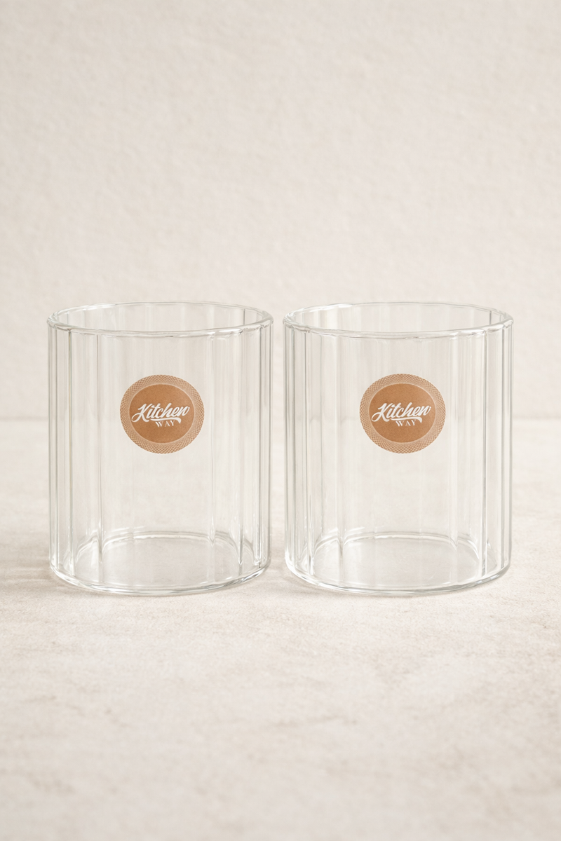 Borosilikat 2’li Cam Meşrubat Bardak 240ml Isıya Dayanıklı Şeffaf Cam Bardak Seti KW-1043