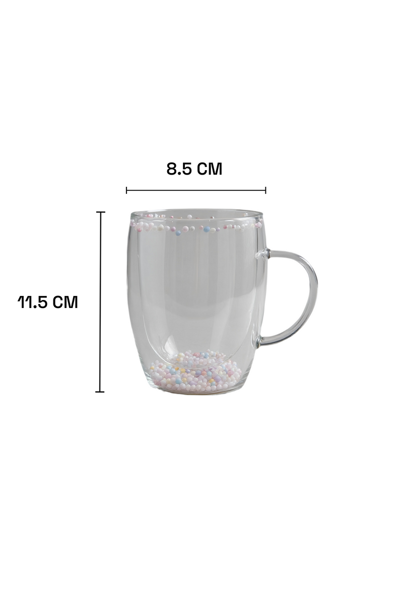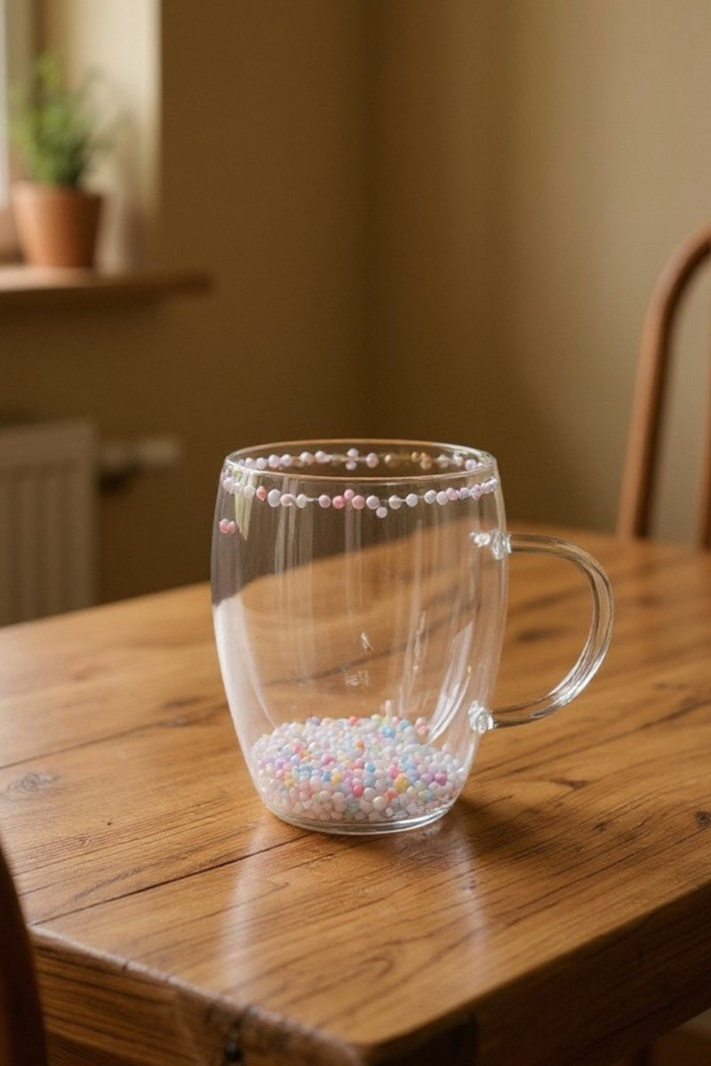 Çift Cidarlı Borosilikat 350ML Boncuk Figürlü Bardak Kupa KW-381B
