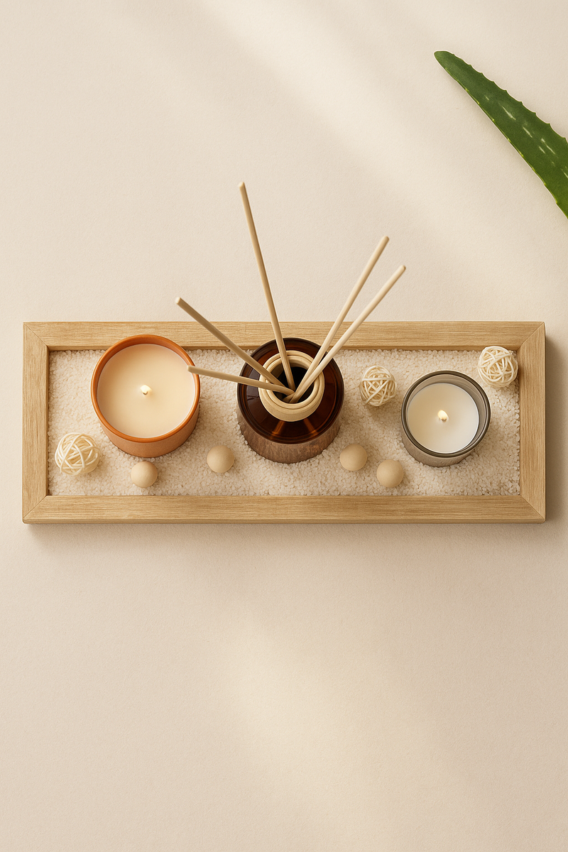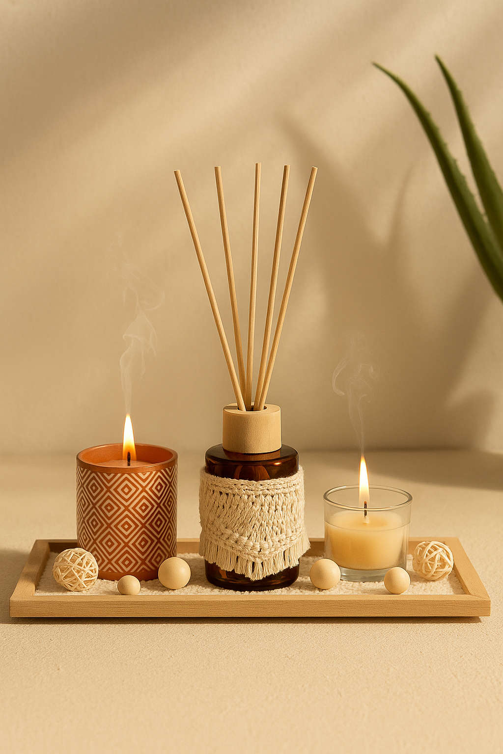 Çubuklu Koku Mum ve Tepsi Dekoratif Set SHN-2057
