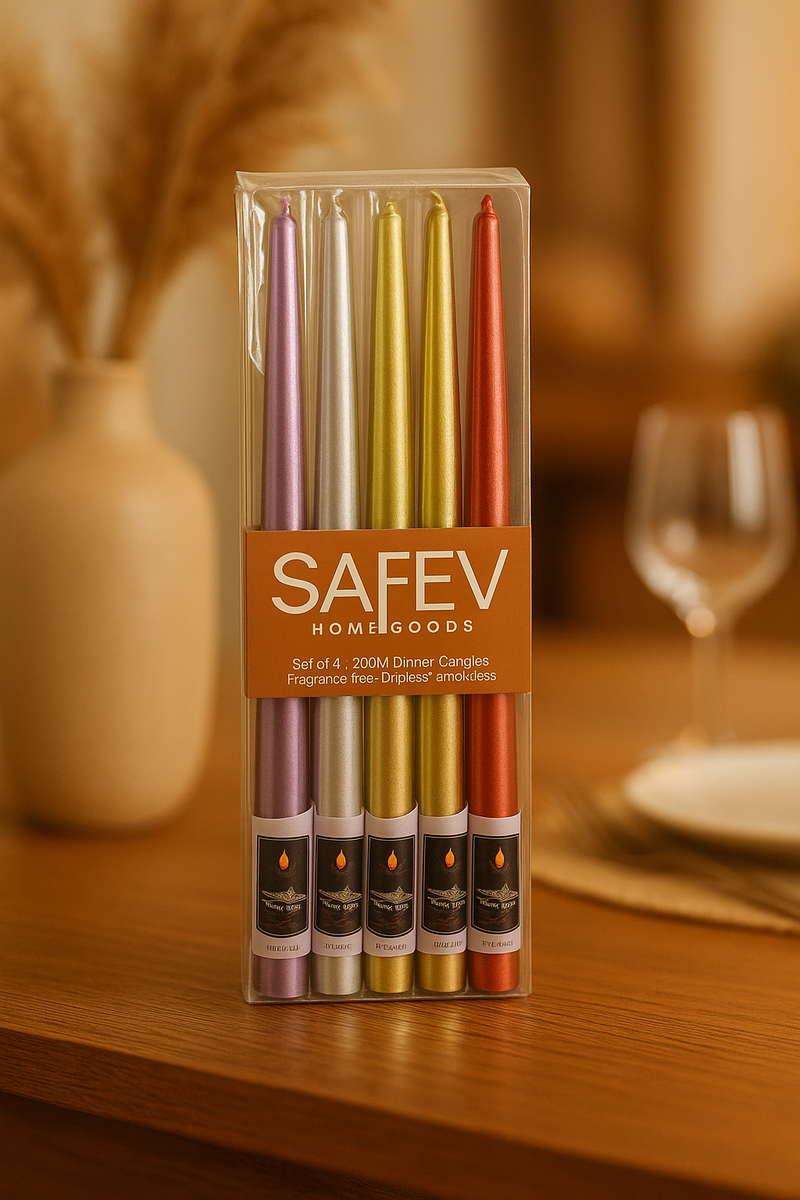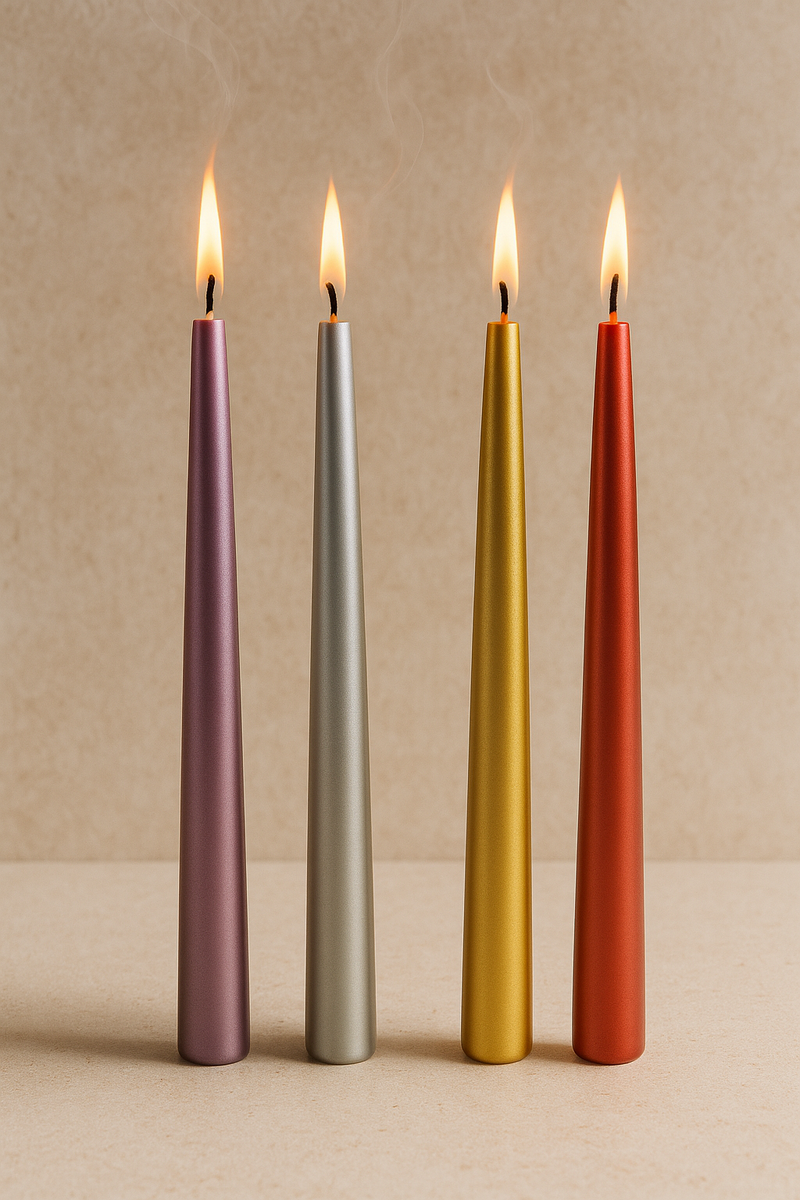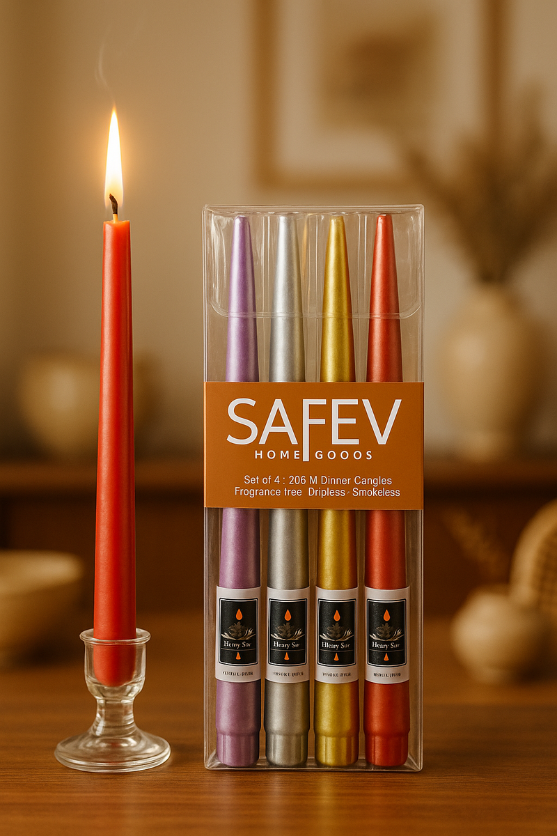 Dekoratif şamdan mumu; yemek masası düzenlemeleri, özel gün kutlamaları ve zarif ev dekorasyonu için ideal bir tamamlayıcıdır. İnce ve uzun formu sayesinde hem klasik hem modern şamdan modellerine uyum sağlar. Dengeli ve temiz yanma performansı ile ortama sıcak ve şık bir atmosfer katarken, davet sofralarında, düğün ve nişan organizasyonlarında estetik bir görünüm oluşturur.