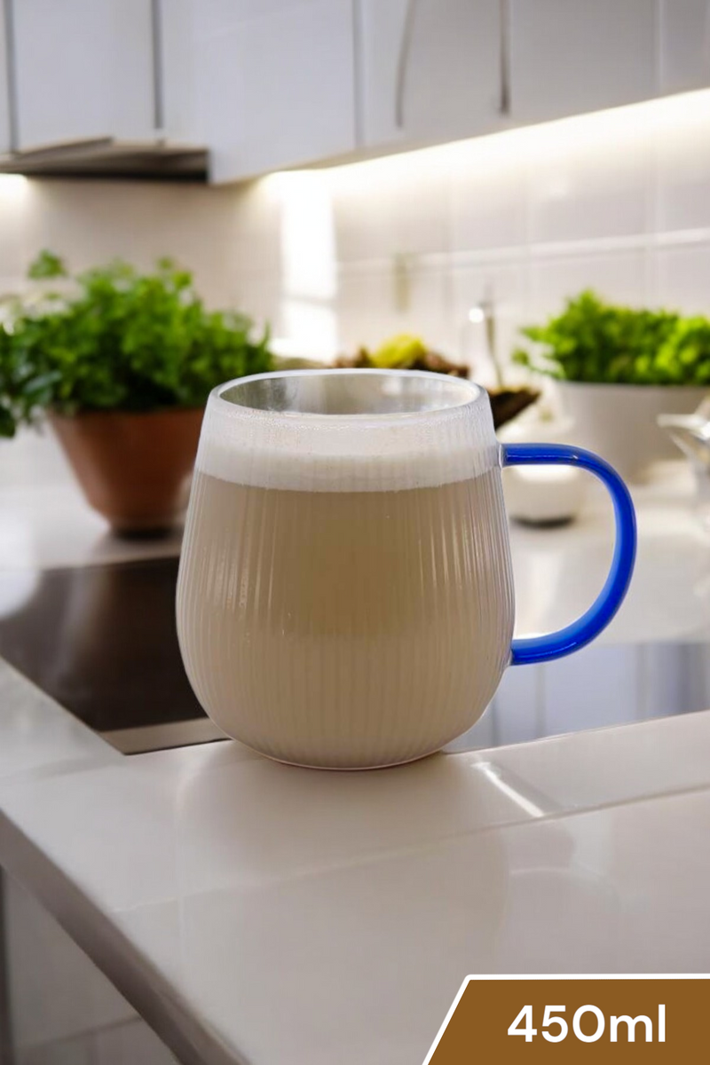 Isıya Dayanıklı Borosilikat Kupa Çizgi Tasarımlı Cam Bardak KW-072 KW-061