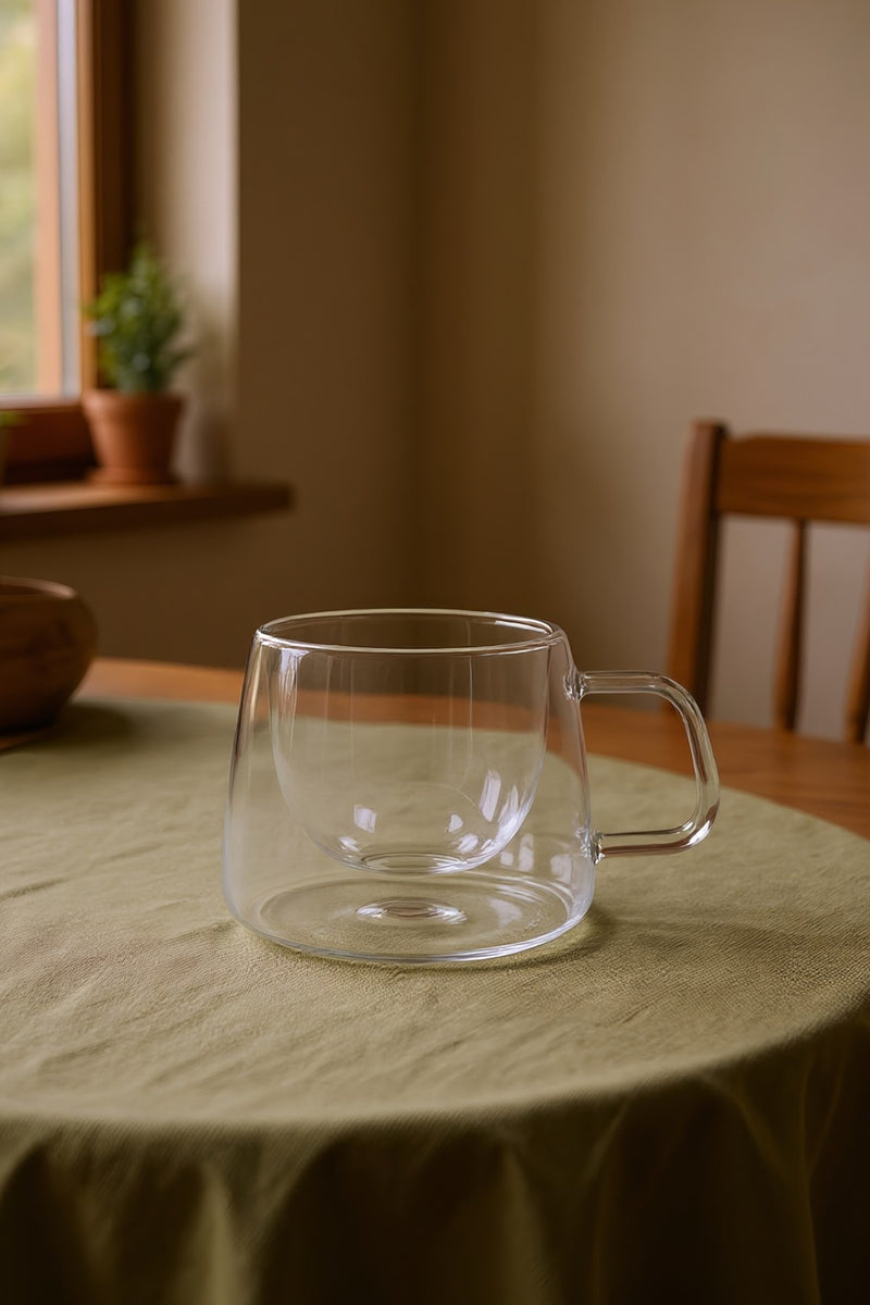 Kulplu Çift Cidarlı 150ML Borosilikat Cam Bardak KW-076