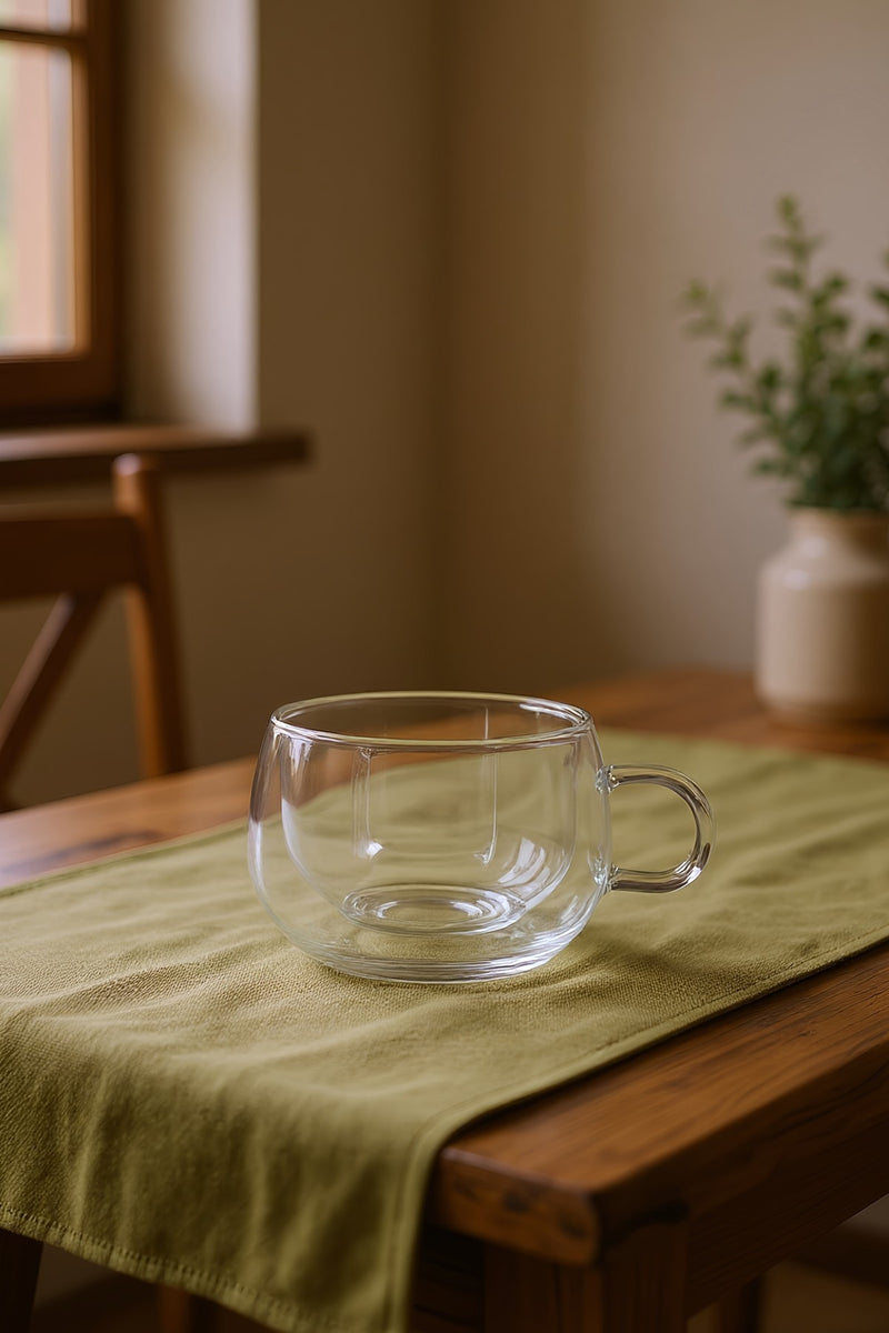Kulplu Çift Cidarlı 200ML Borosilikat Cam Bardak KW-077