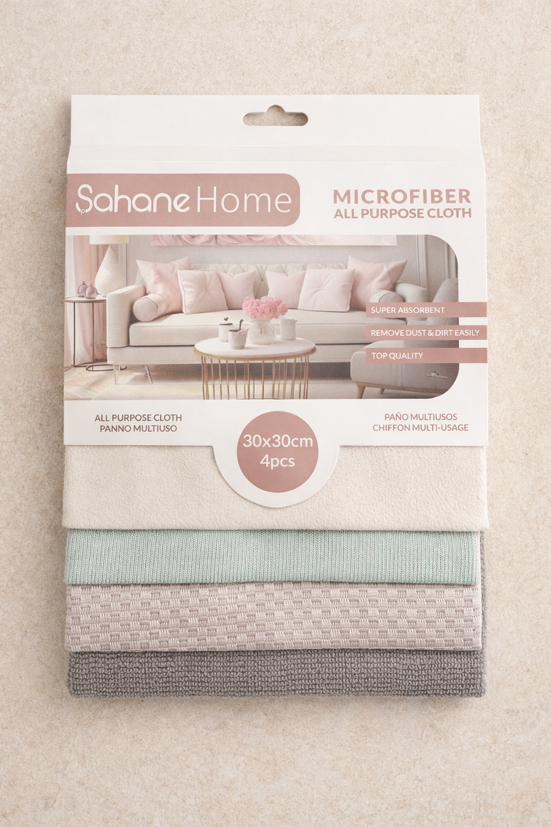 4'lü Mikrofiber Bez Çok Amaçlı Temizlik Bezi Yumuşak Dokulu Etkili Temizlik SHN-1307