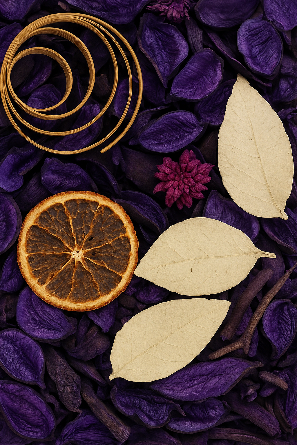 - İçerik: Kuru çiçek yaprakları, kuru çiçekler, kuru meyve dilimleri ve dekoratif doğal parçalar