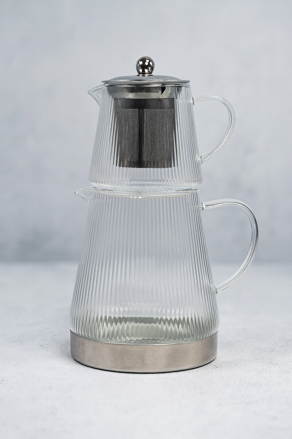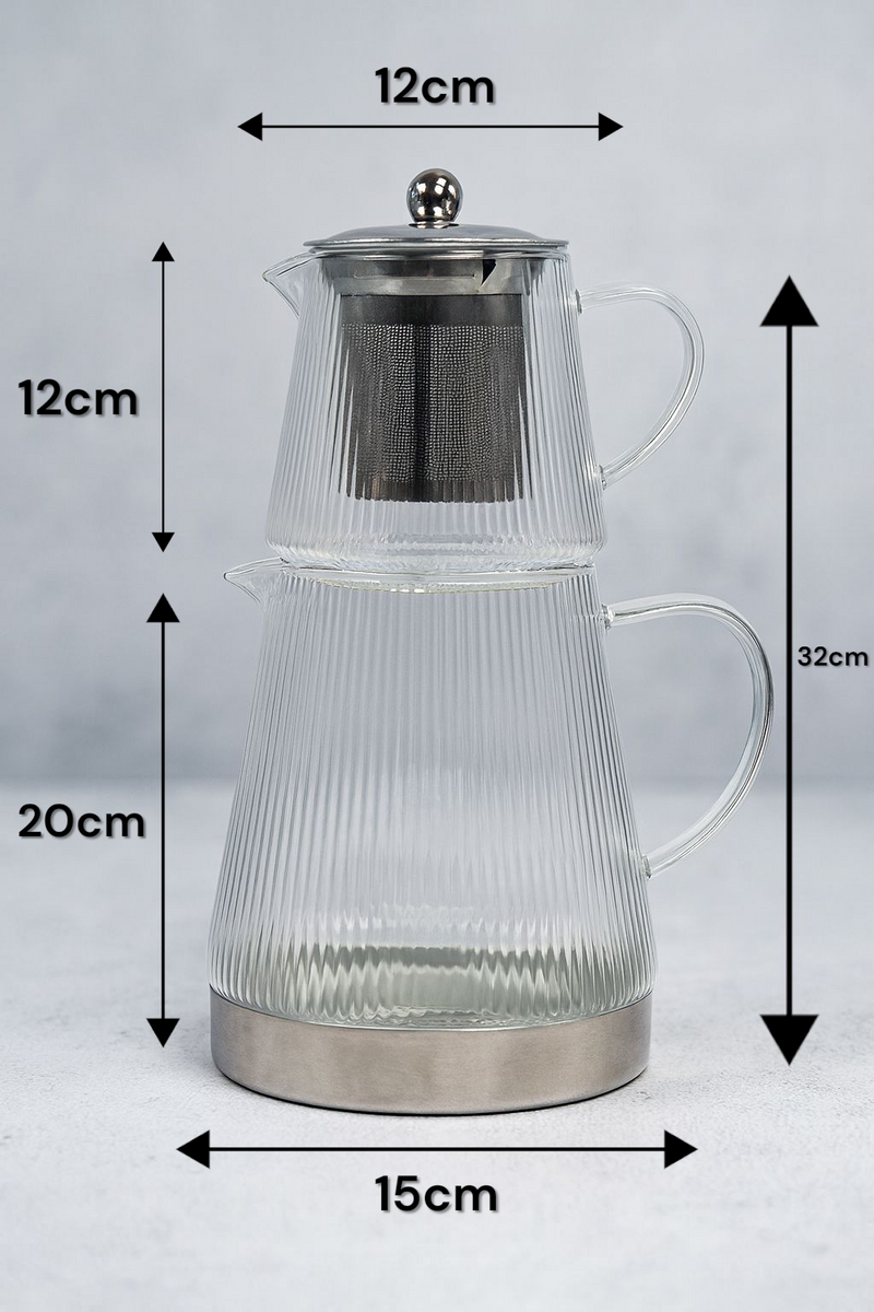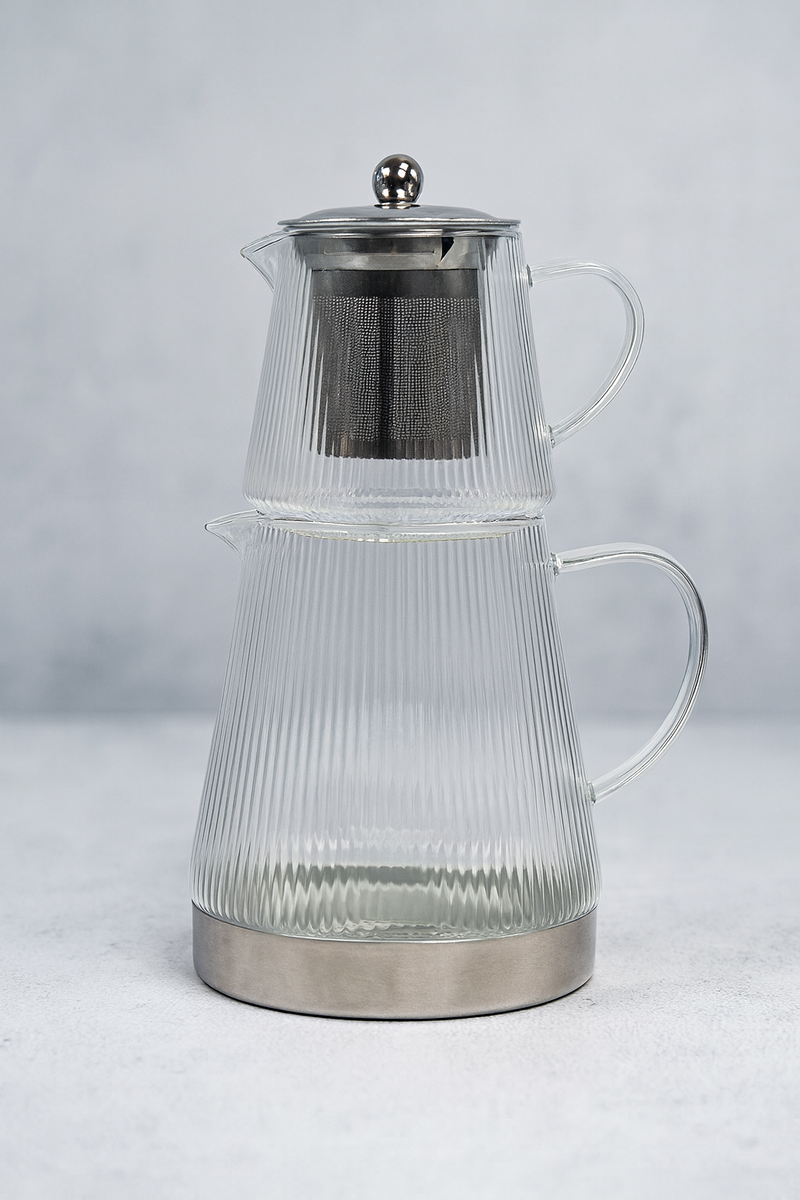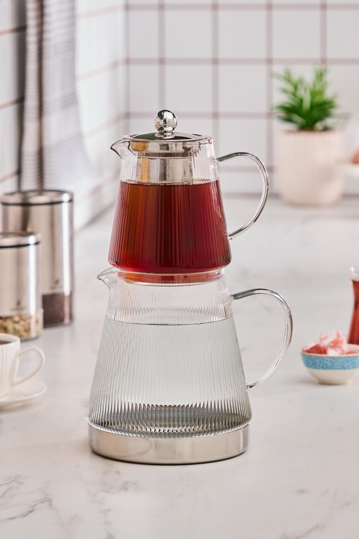 Yüksek kaliteli borosilikat camdan üretilen bu zarif çaydanlık seti, ısıya dayanıklılığı ve şeffaf tasarımıyla fark yaratır. Üst ve alt bölümleri sayesinde çayın demlenme sürecini rahatlıkla gözlemleyebilir, her seferinde ideal dem oranını yakalayabilirsiniz.
