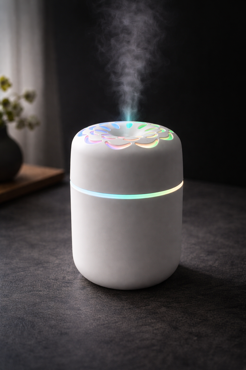 Bu 250 ml hava nemlendirici, ortamın hava kalitesini artırırken aynı zamanda RGB sabit renkli LED ışığı ile dekoratif bir ambiyosfer sağlar. Ultrasonik mikro sis teknolojisi sayesinde sessiz çalışır ve kuru havayı dengeler, özellikle klima veya kışın kuru havalı ortamlarda pratik nem desteği sunar. USB güç ile her yerde kolayca kullanılabilir. Taşınabilir ve kompakt tasarımı, günlük hayatta rahat kullanım sağlar.
