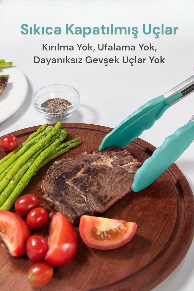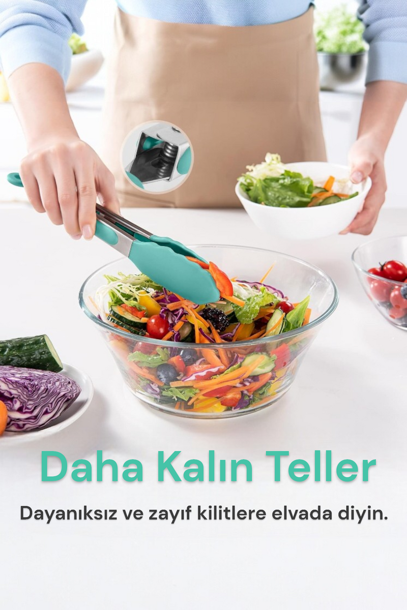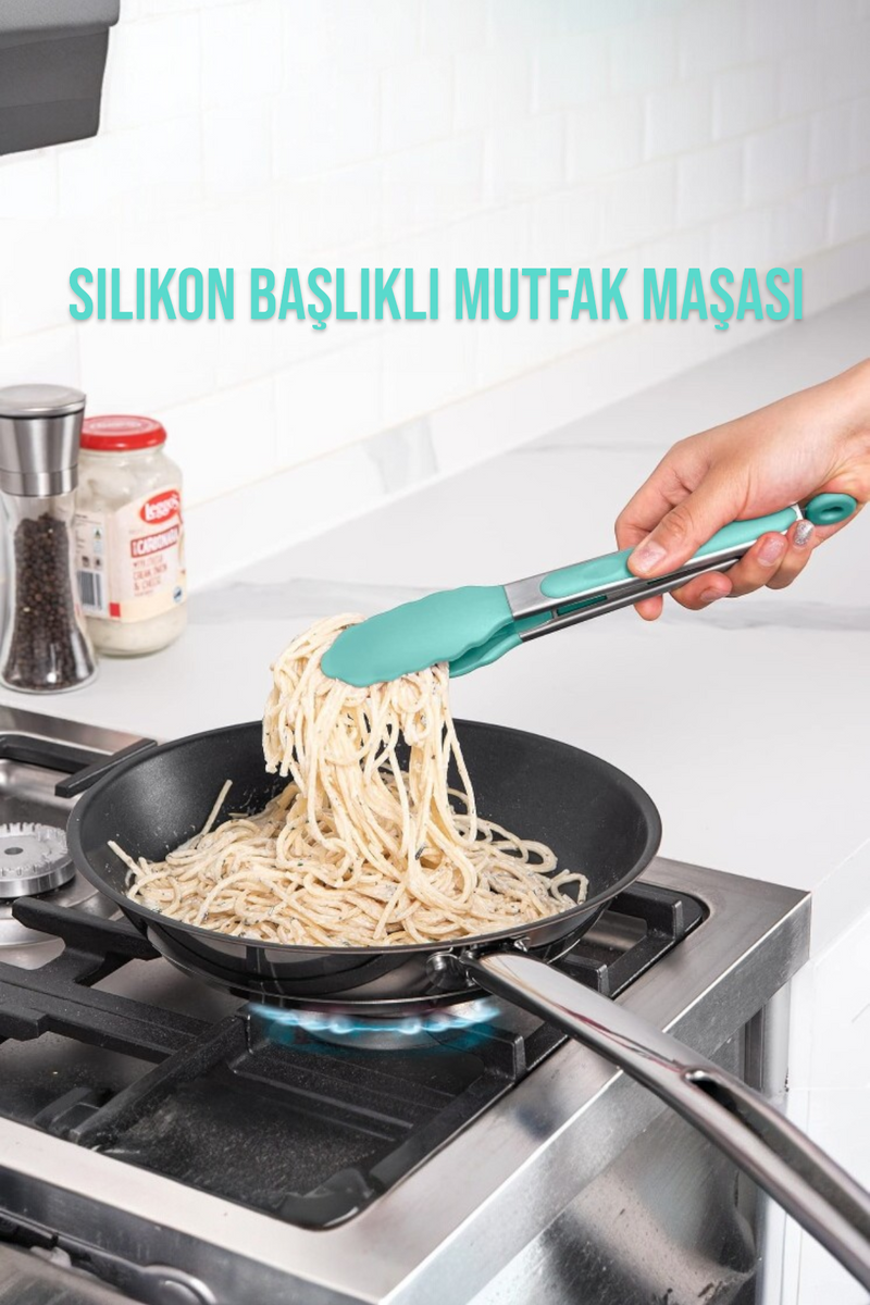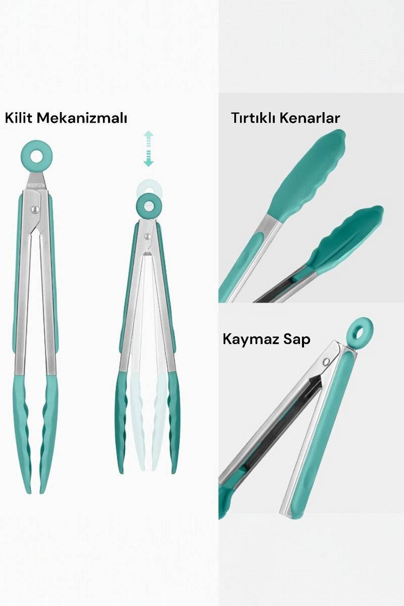 Silikon Başlık Kilit Mekanizmalı Kaymaz Saplı Mutfak ve Yemek Maşası KW-187