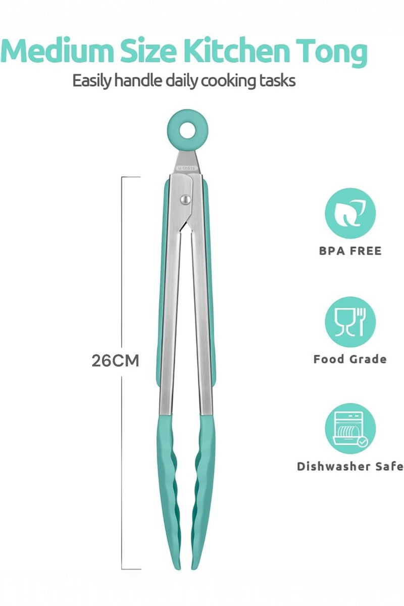 - [Bulaşık makinesinde yıkanabilir ve saklaması kolay] Gıdalar maşaya yapışmaz, böylece hızlı bir şekilde silebilir ve sıcak sabunlu suyla yıkayabilir veya bulaşık makinesine atabilirsiniz. Kolay erişim sağlamak için kilitlenebilir ve mutfak çekmecesinde saklanabilir veya bir halka ile duvara asılabilir. Mutfağınıza uygun birçok renk mevcuttur. Yemek, salata, et, kolay pişirme ve kızartma servis etmek için güzel.